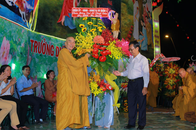 Chào mừng Đại lễ Phật Đản Pl:2559 – Dl:2015, lãnh đạo Quận ủy, UBND, UBMTTQ Quận 1, BTS TP.HCM, BTS các Quận đã gởi nhiều lẳng hoa và quà chúc mừng đến Ban trị sự PG Quận 1.