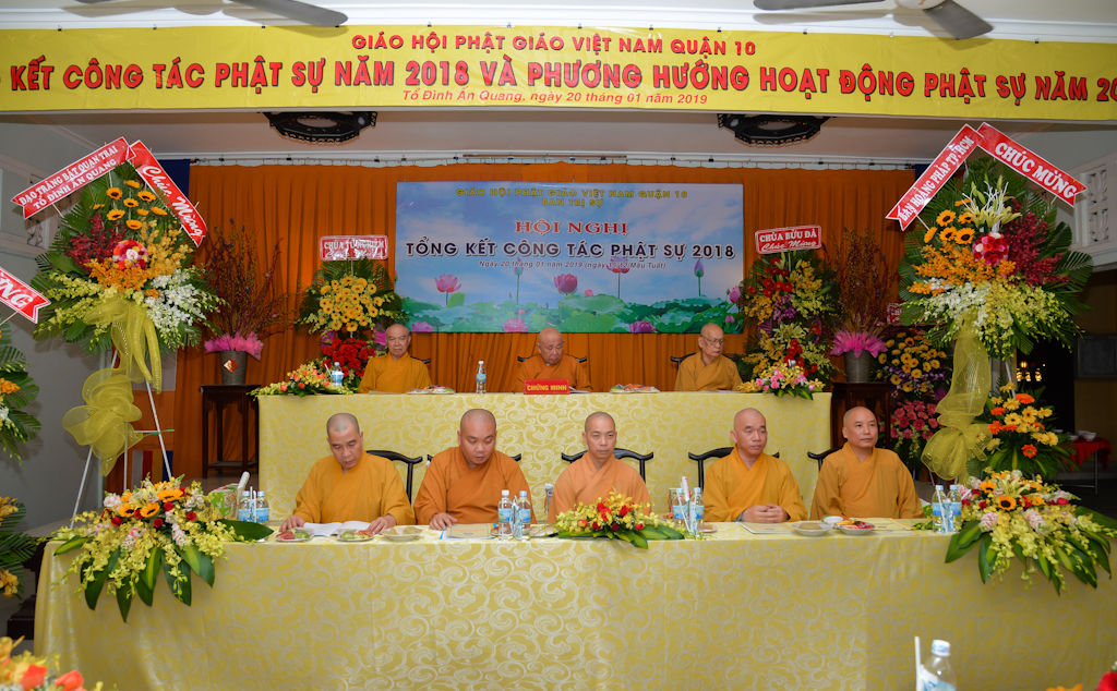 Để đánh giá hoạt động Phật sự trong năm qua và bàn phương hướng hoạt động trong năm tới, Ban trị sự GHPGVN Quận 10 đã long trọng tổ chức Hội nghị Tổng kết diễn ra vào ngày 20/1, tại Tổ đình Ấn Quang, Quận 10, TP.HCM.