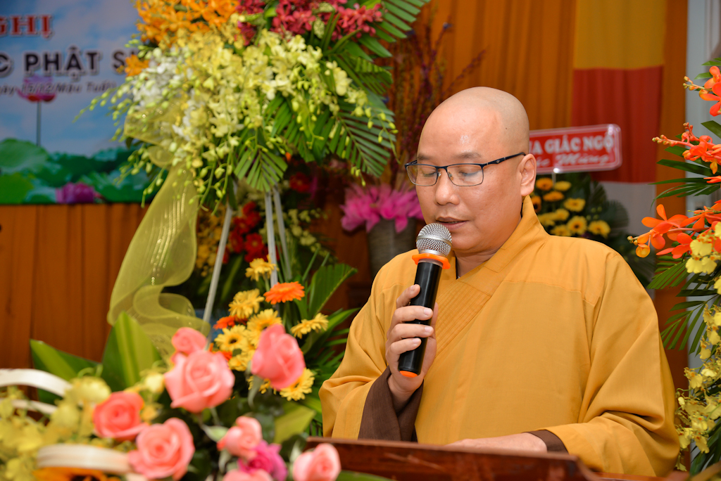 ĐĐ.Thích Tâm Hoa – Chánh thư ký BTS PG Q.10 báo cáo công tác Phật sự