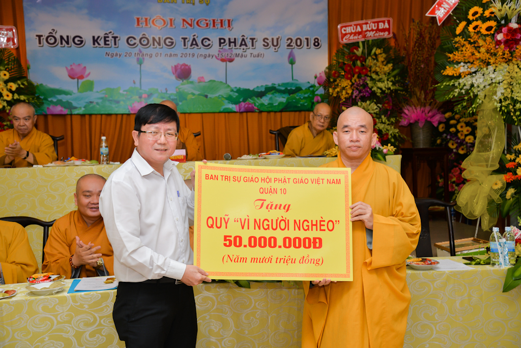 Dịp này, Phật giáo Q.10 cũng trao tặng 50 triệu đồng cho Quỹ “Vì Người Nghèo”