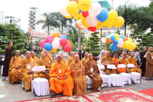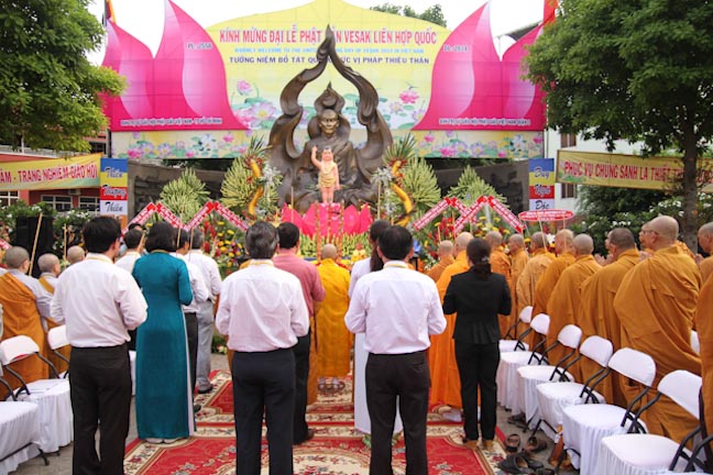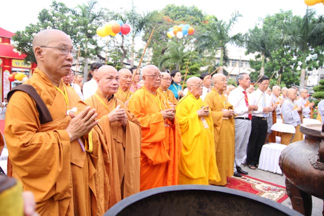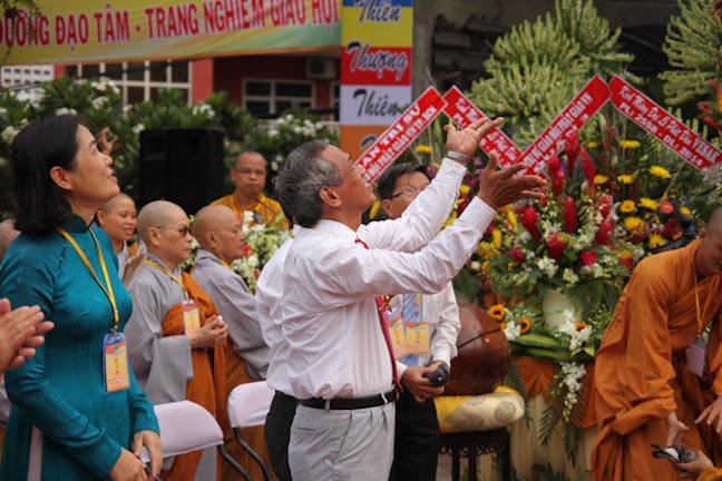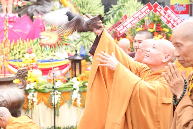 Để hân hoan chào mừng ngày Đại lễ Phật Đản, Chư tôn đức giáo phẩm và quý quan khách tham dự đã tung những cánh chim bồ câu, cùng bong bóng tượng trưng cho hòa bình với lời cầu nguyện cho thế giới và cho dân tộc Việt Nam