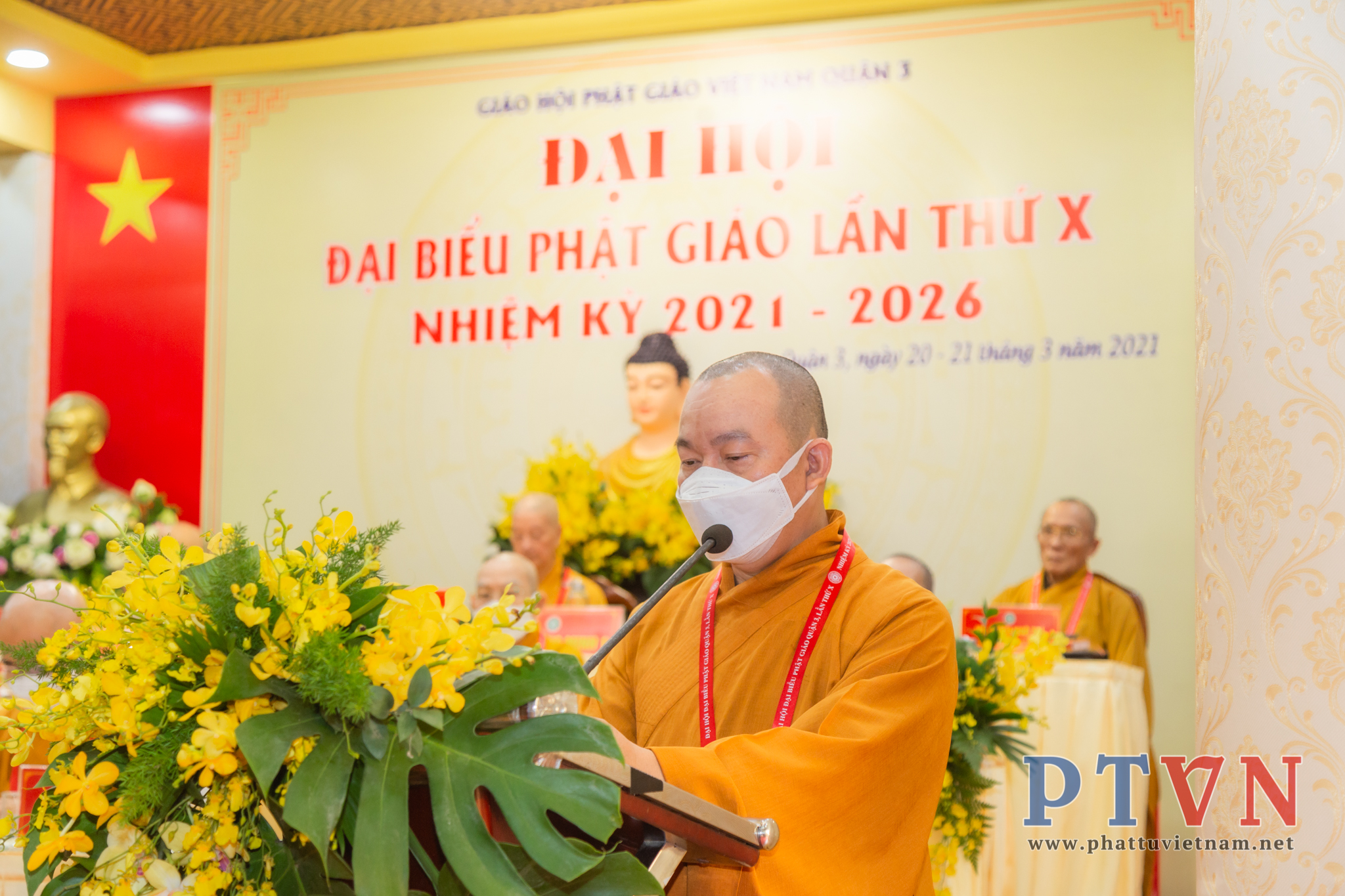 Trong bài phát biểu khai mạc, Hòa thượng Thích Minh Hiền – Trưởng Ban Trị sự PG Quận 3 cho biết, sau ngày thống nhất đất nước năm 1975, tháng 11 năm 1981, Đại hội Đại biểu thống nhất Phật giáo cả nước được diễn ra. Kể từ đó, Giáo hội Phật giáo Việt Nam các cấp được hình thành. Trải qua chặng đường hơn 40 năm thành lập và phát triển Giáo hội, Phật giáo Quận 3 vừa được củng cố, vừa được phát triển, đã viết lên những trang sử vàng son, gắn liền với hành trạng của nhiều bậc Tôn túc lãnh đạo của Giáo hội.