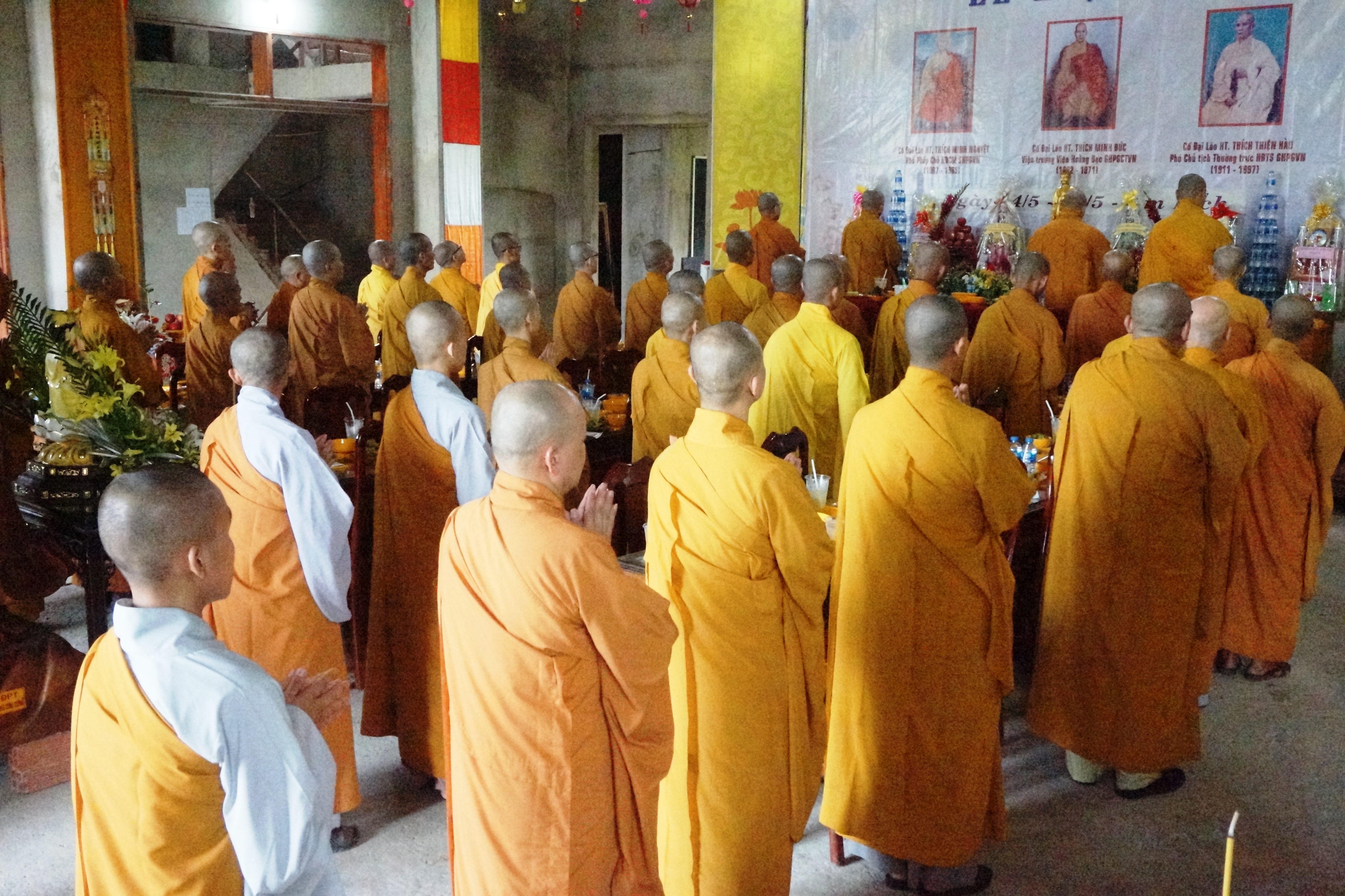 Buỗi lễ diễn ra trong không khí thanh tịnh, hòa hợp với hơn 60 hành giả tập trung về tụng giới.