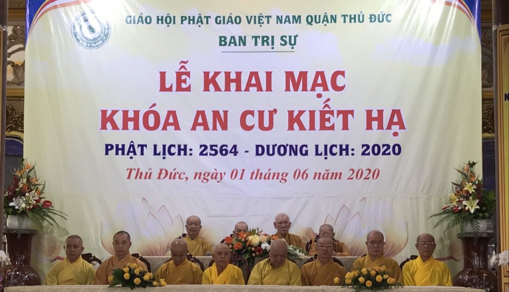 PTVN – Chiều ngày 01/6/2020 (10/4 Canh Tý) tại chùa Vạn Đức (đường Tô Ngọc Vân, quận Thủ Đức, TP.HCM), Ban Trị sự GHPGVN (BTS PG) quận Thủ Đức đã trang nghiêm tổ chức Lễ tổng khai giảng khóa An cư kiết hạ (ACKH) PL.2564 – DL.2020 cho các trường hạ trên địa bàn quận.