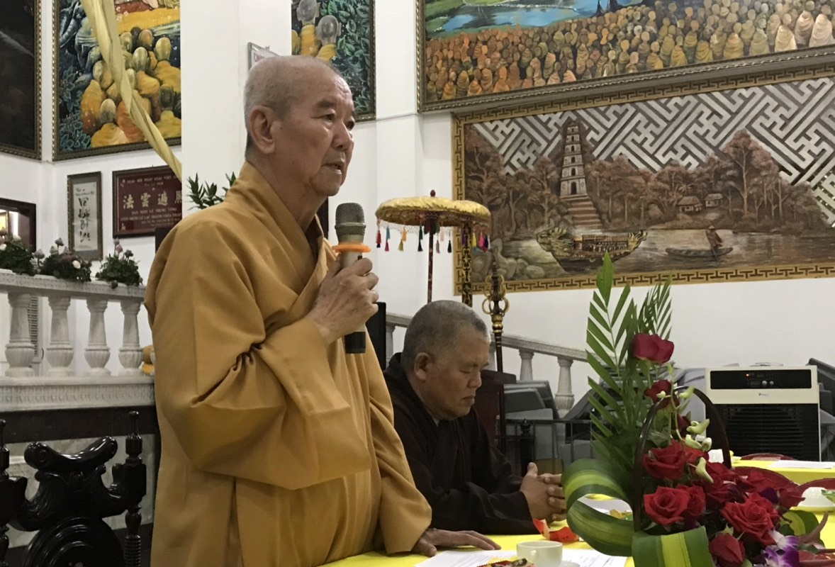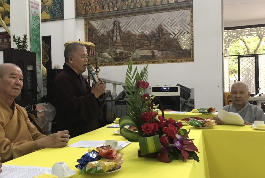 Mở đầu phiên họp, TT.Thích Thiện Hòa – Phó Trưởng ban Thường trực Ban Trị sự GHPGVN Q.Tân Phú phát biểu khai mạc.