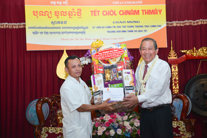 Nhân Tết cổ truyền Chôl Chnăm Thmây, Phó Thủ tướng thường trực Trương Hòa Bình gởi lời thăm hỏi ân cần đến Chư Tăng, đồng bào Khmer, các em sinh viên lời chúc mừng năm mới hạnh phúc, an khang, thịnh vượng.
