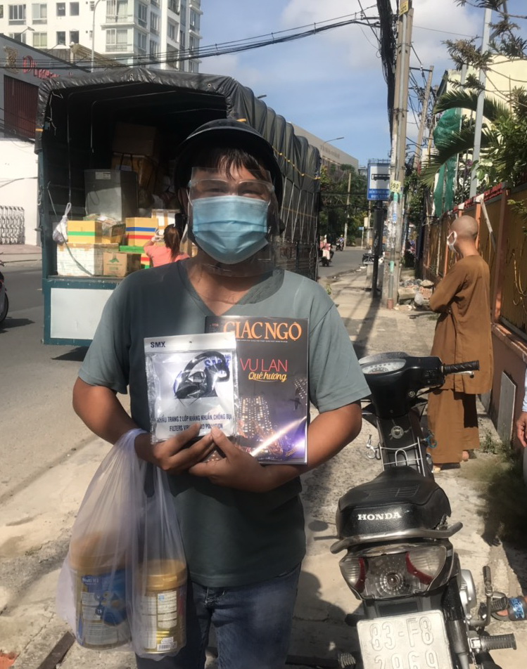 Anh Ngô Hoàng Chương, đại diện các Shipper tình nguyện viên chia sẻ thêm: “Trong lúc khó khăn này, mọi người ai cũng đều thiếu thốn, vì thấu hiểu điều đó nên Quý Thầy Cô và chúng tôi muốn đóng góp phần nào đó với bà con Thành phố, với mong muốn mọi người được bình an và khỏe mạnh. Tôi rất tri ân và cảm niệm công đức của Quý Thầy Cô đã dẫn dắt đội ngũ shipper cùng các bộ phận khác trong công tác thiện nguyện ý nghĩa này”.