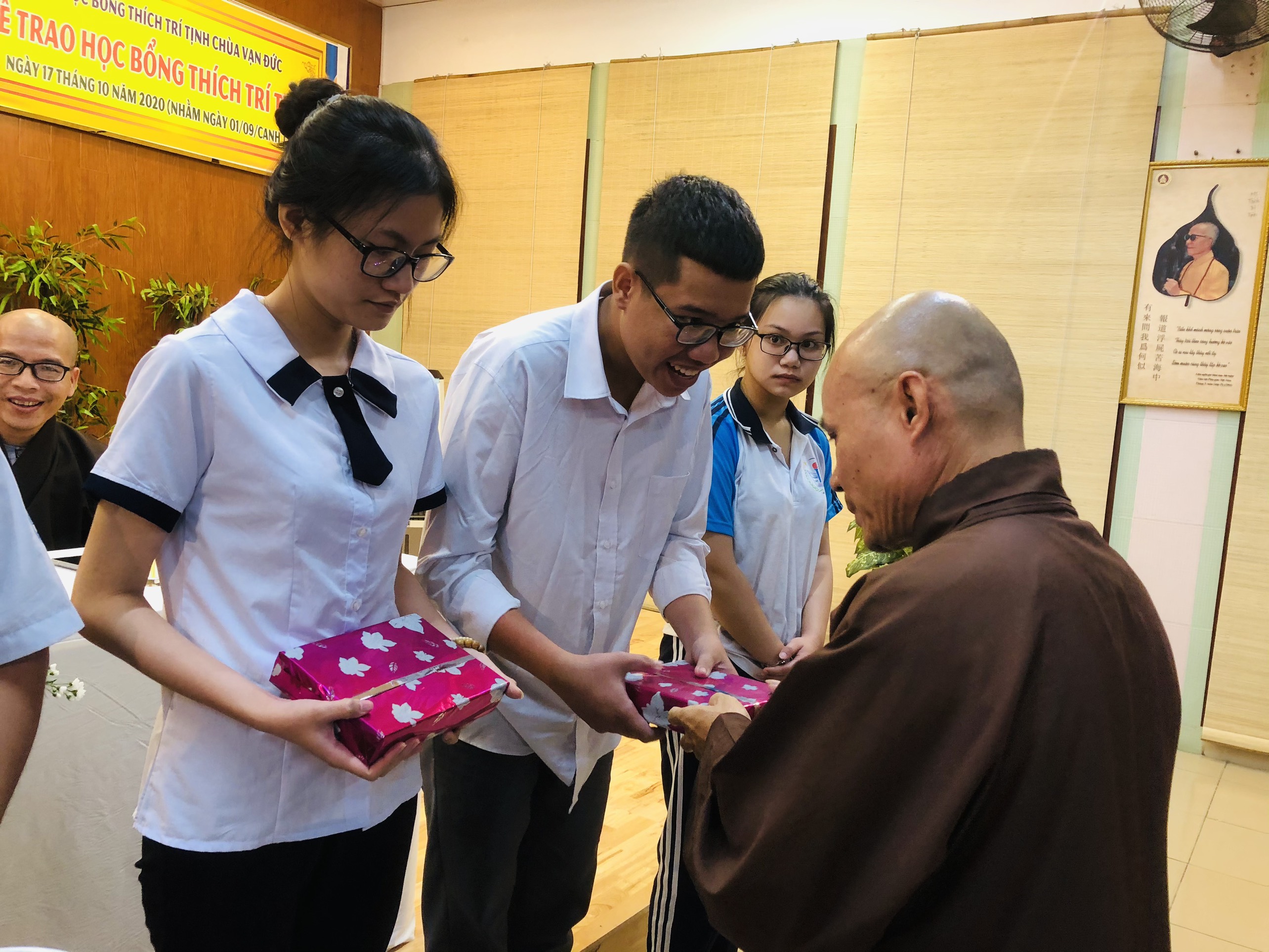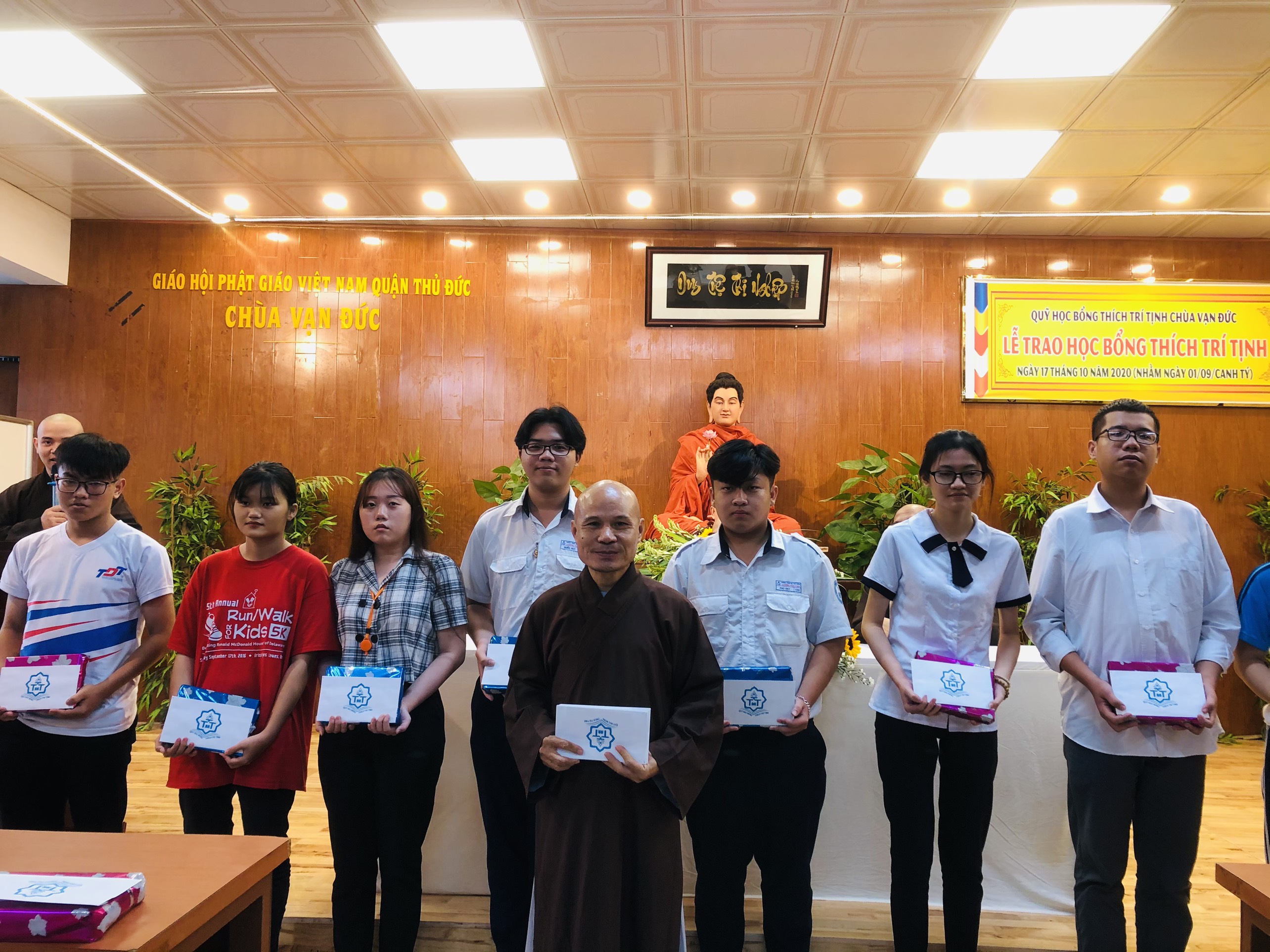 PTVN – Chiều ngày 17/10/2020 (nhằm ngày 01/09/Canh Tý), Quỹ học bổng Thích Trí Tịnh do chùa Vạn Đức sáng lập đã trao tặng 60 suất học bổng cho các em học sinh, sinh viên vượt khó, hiếu học tại chùa Vạn Đức (Q.Thủ Đức, Tp. HCM).