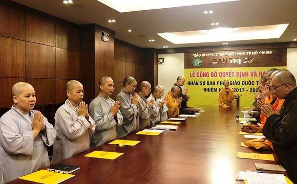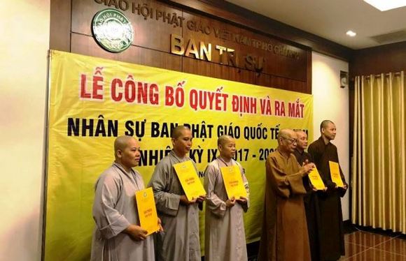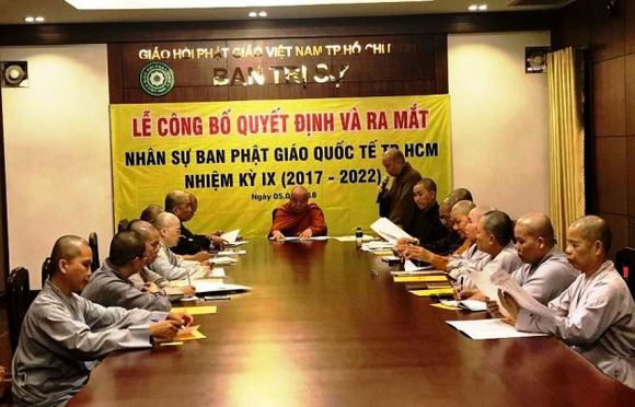 Ban Phật giáo Quốc tế GHPGVN TP.HCM nhiệm kỳ IX (2017 -2022), gồm 36 thành viên, do HT.Thích Thiện Tâm đảm nhận Trưởng Ban, TT.Thích Quang Thạnh – Phó trưởng ban Thường trực, TT.Thích Giác Hiệp – Phó trưởng ban kiêm Chánh thư ký.