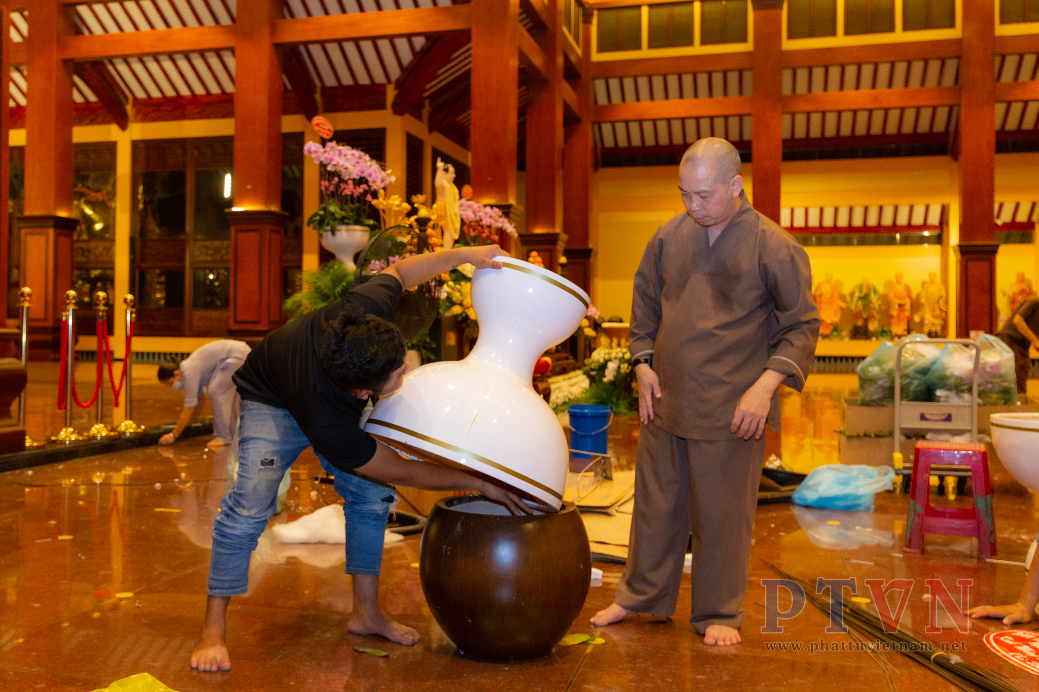 Bên cạnh đó, chư tôn đức BTS GHPGVN TP.HCM cũng đang khẩn trương chuẩn bị không gian tắm Phật cũng được diễn ra vào sáng mai tại Việt Nam Quốc Tự (Quận 10)