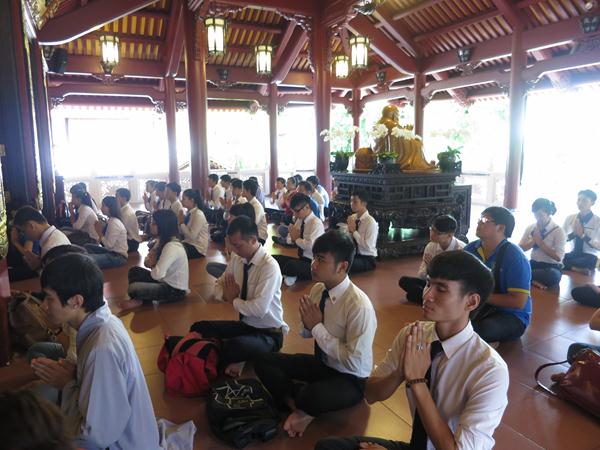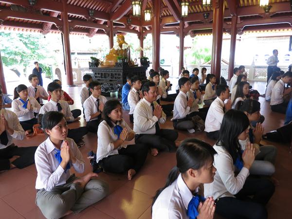 Được biết trường THNV Du lịch và Khách sạn TP.HCM đã đưa môn Di tích lịch sử Chùa vào chương trình giảng dạy dành cho sinh viên các lớp hướng dẫn du lịch, thông qua đó giáo dục về nhân cách và đạo đức cho sinh viên dựa trên nền tảng đạo đức của Phật giáo. Sinh viên không những được học về đạo Phật mà còn có những chuyến đi thực tế đến những ngôi chùa để tìm hiểu về ý nghĩa bài trí Phật điện, ý nghĩa của các Phật tượng và Bồ Tát tượng làm nền tảng cho kiến thức thuyết minh phục vụ du lịch. Từ đó ứng dụng các qui tắc ứng xử của Phật giáo trong đời sống học tập và làm việc, giúp sinh viên nhận thức được ý nghĩa và trách nhiệm của mình đối với bản thân, gia đình và xã hội.