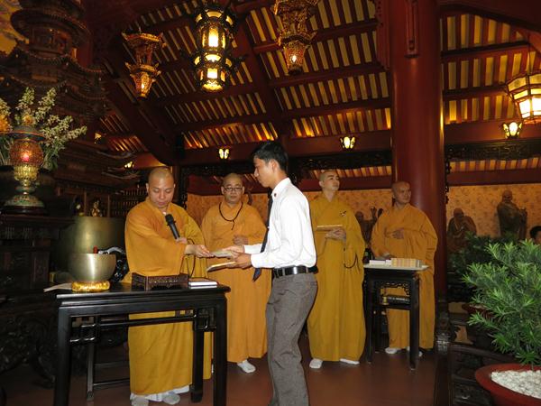 Sau thời pháp giảng về ý nghĩa của Tam qui – Ngũ Giới, Đại chúng cung thỉnh Thượng Tọa Thích Đồng Văn – Trụ trì chùa Viên Giác đã đăng đàn thuyết Tam Qui và truyền ngũ giới cho các bạn sinh viên. Buổi lễ diễn ra trong không khí thật trang nghiêm dưới sự hướng dẫn của Thượng tọa trụ trì. Sau lễ qui y, thượng tọa Thích Đồng Văn đã ban đạo từ sách tấn các bạn sinh viên với nội dung xúc tích và trao phái quy y cho từng bạn cùng với nhiều quà tặng của chùa.