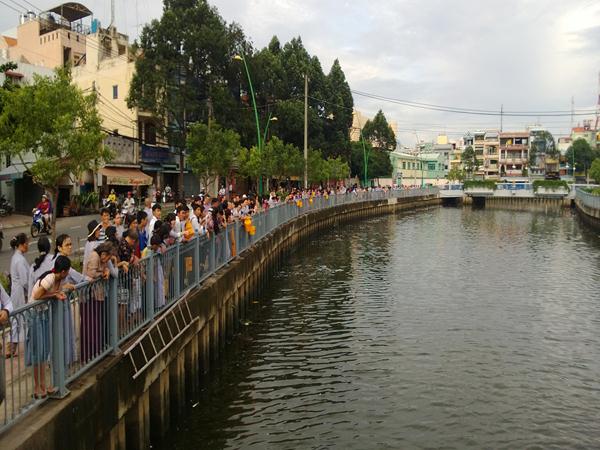 Buổi lễ qui y khép lại bằng nghi thức phóng sanh thả cá vào lúc 15h30 do chư tăng và Phật tử đạo tràng chùa Viên Giác tổ chức. Các bạn sinh viên một lần nữa hiểu rõ hơn về giới không sát sanh cũng như những hành động thiết thực để ươm mầm sự sống, nuôi dưỡng lòng từ bi. Xin được tri ân Thượng tọa trụ trì và chư tăng cùng Phật tử chùa Viên Giác đã dành một ngày quý báu để hướng dẫn, tổ chức lễ qui y cho sinh viên, thế hệ tương lai của đất nước và là những người giúp cho sự duy trì và phát triển của giềng mối Đạo Phật trong tương lai.