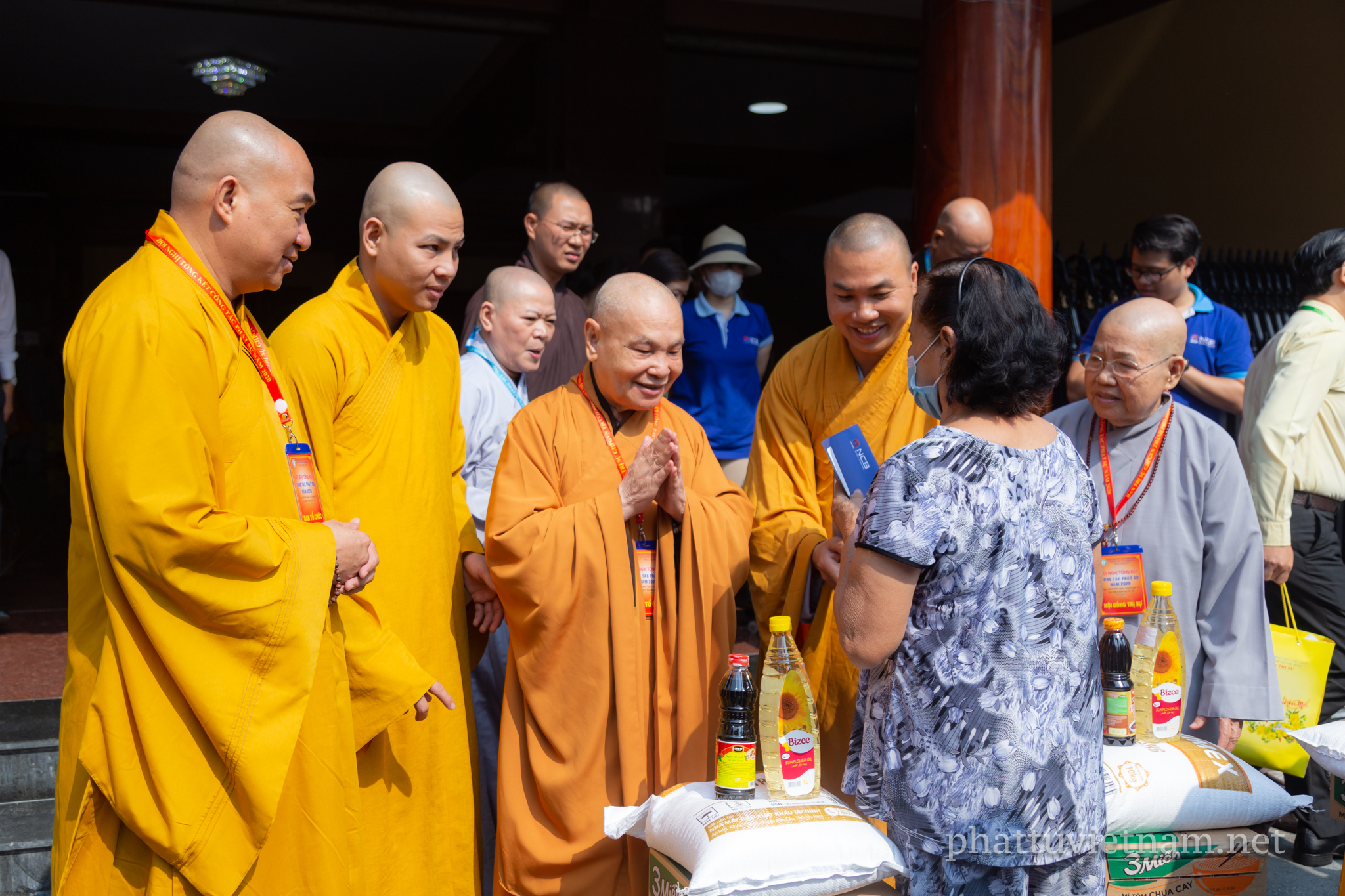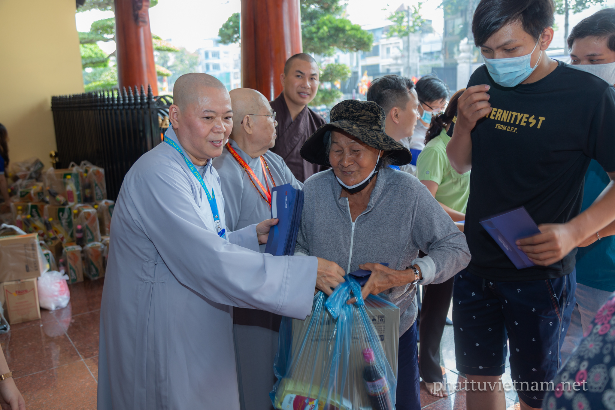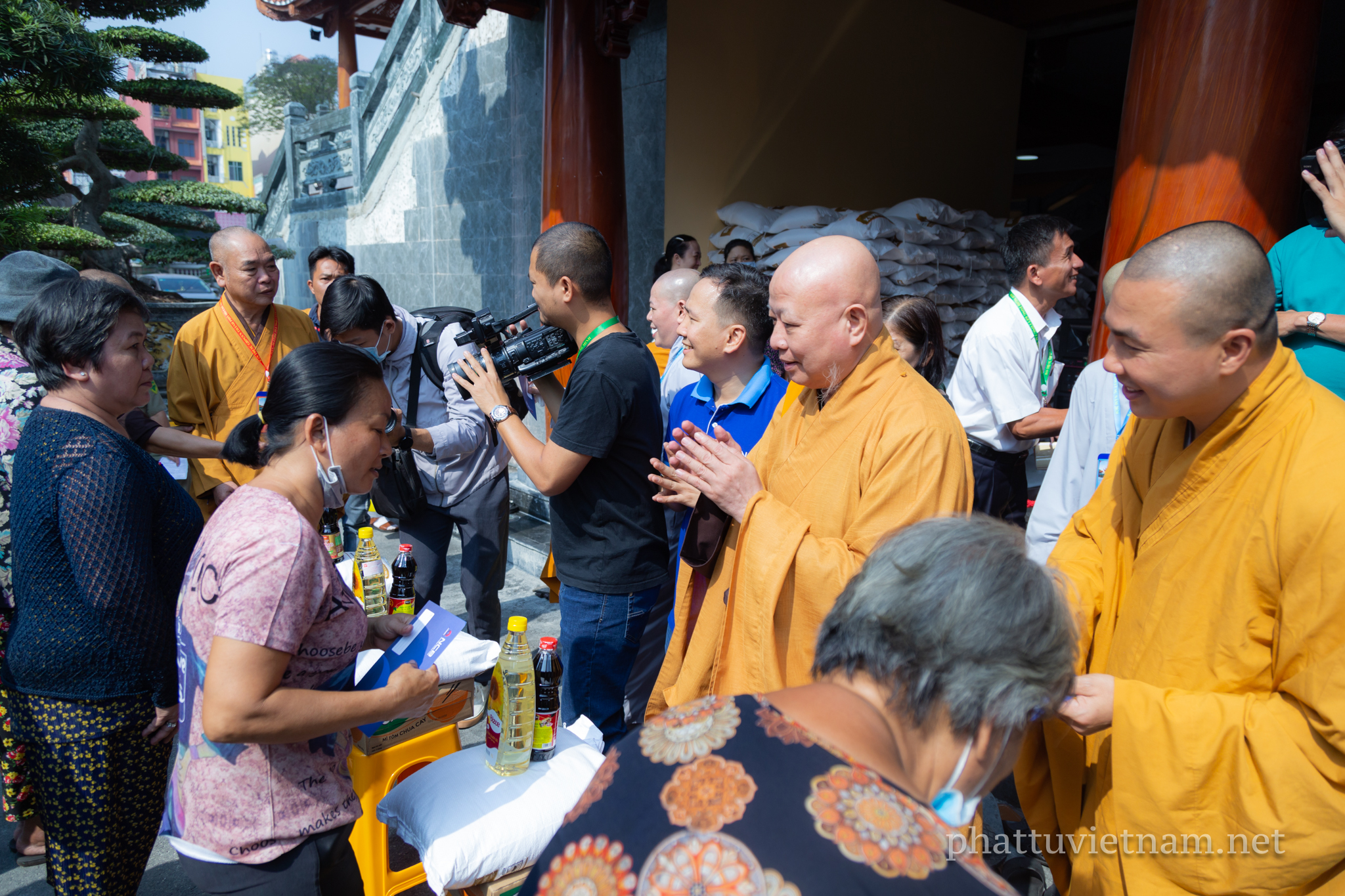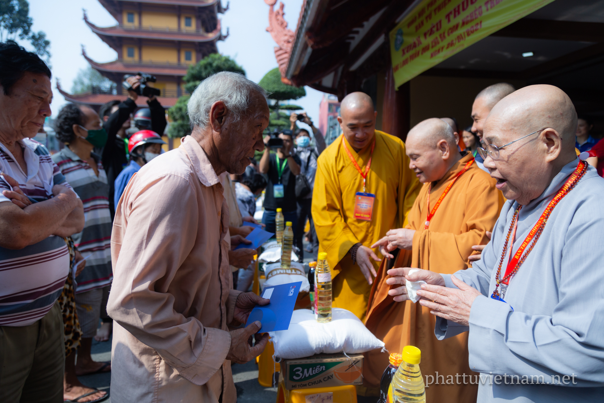 Năm nay, chư tôn đức Thường trực BTS GHPGVN TP.HCM kết hợp với Ban Từ thiện xã hội Phật giáo TP phát quà tại 3 cơ sở tự viện trực thuộc quản lý của Ban Trị sự: Việt Nam Quốc Tự (Q.10), chùa Phổ Quang (Q.Tân Bình), chùa Thanh Tâm (H.Bình Chánh).