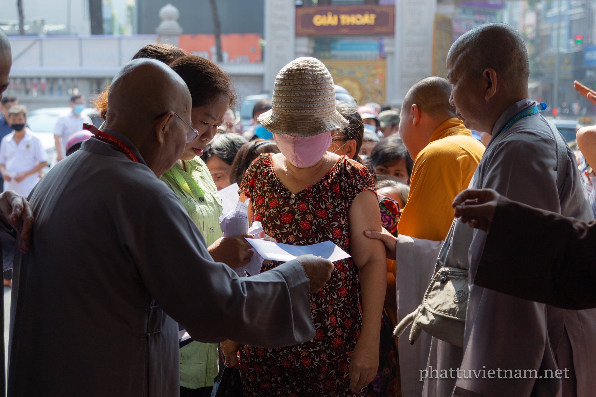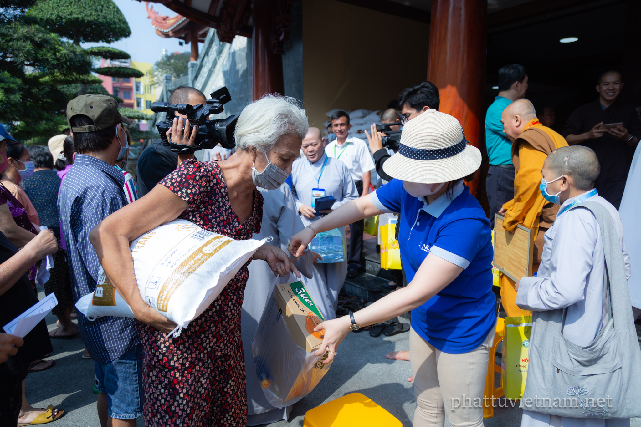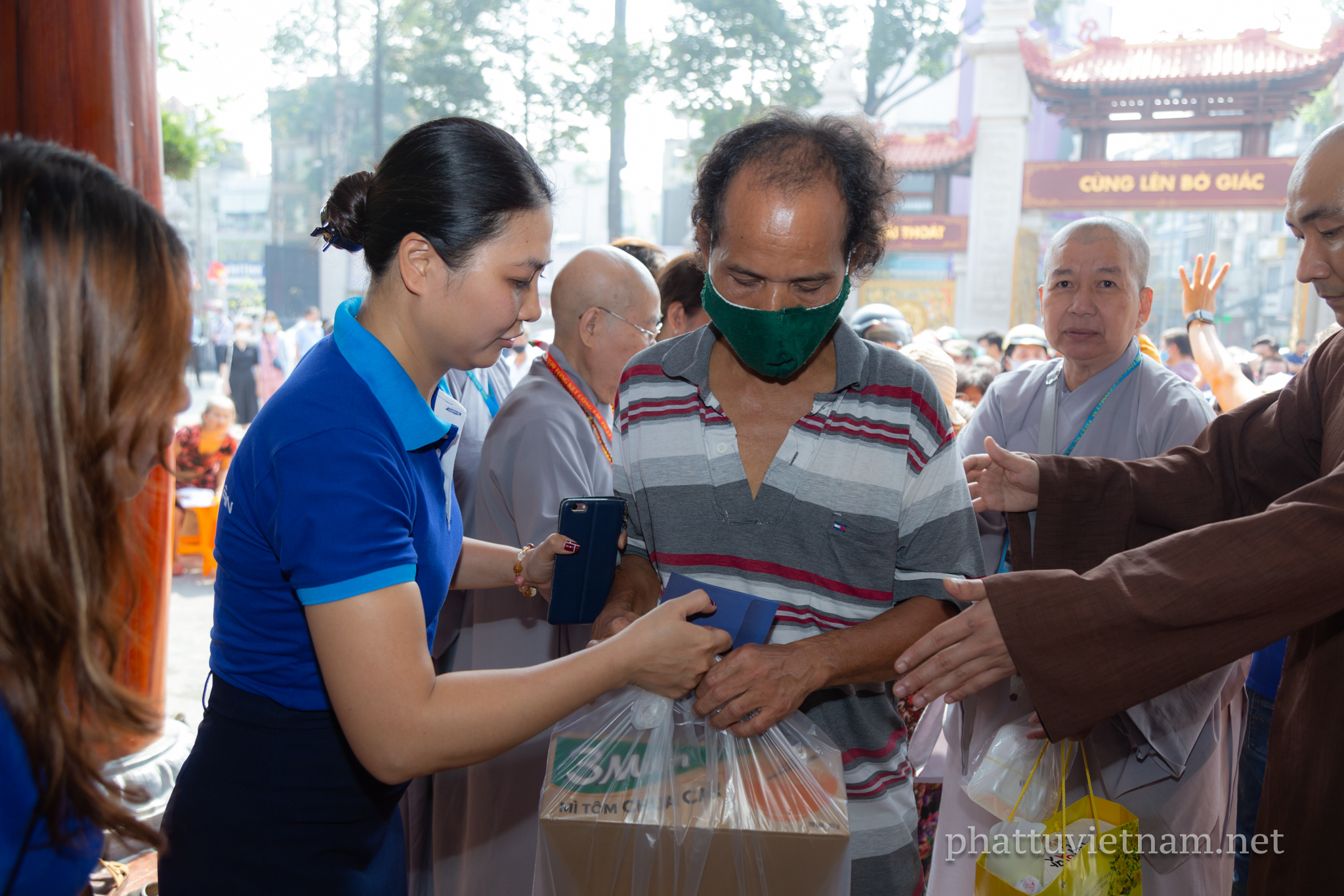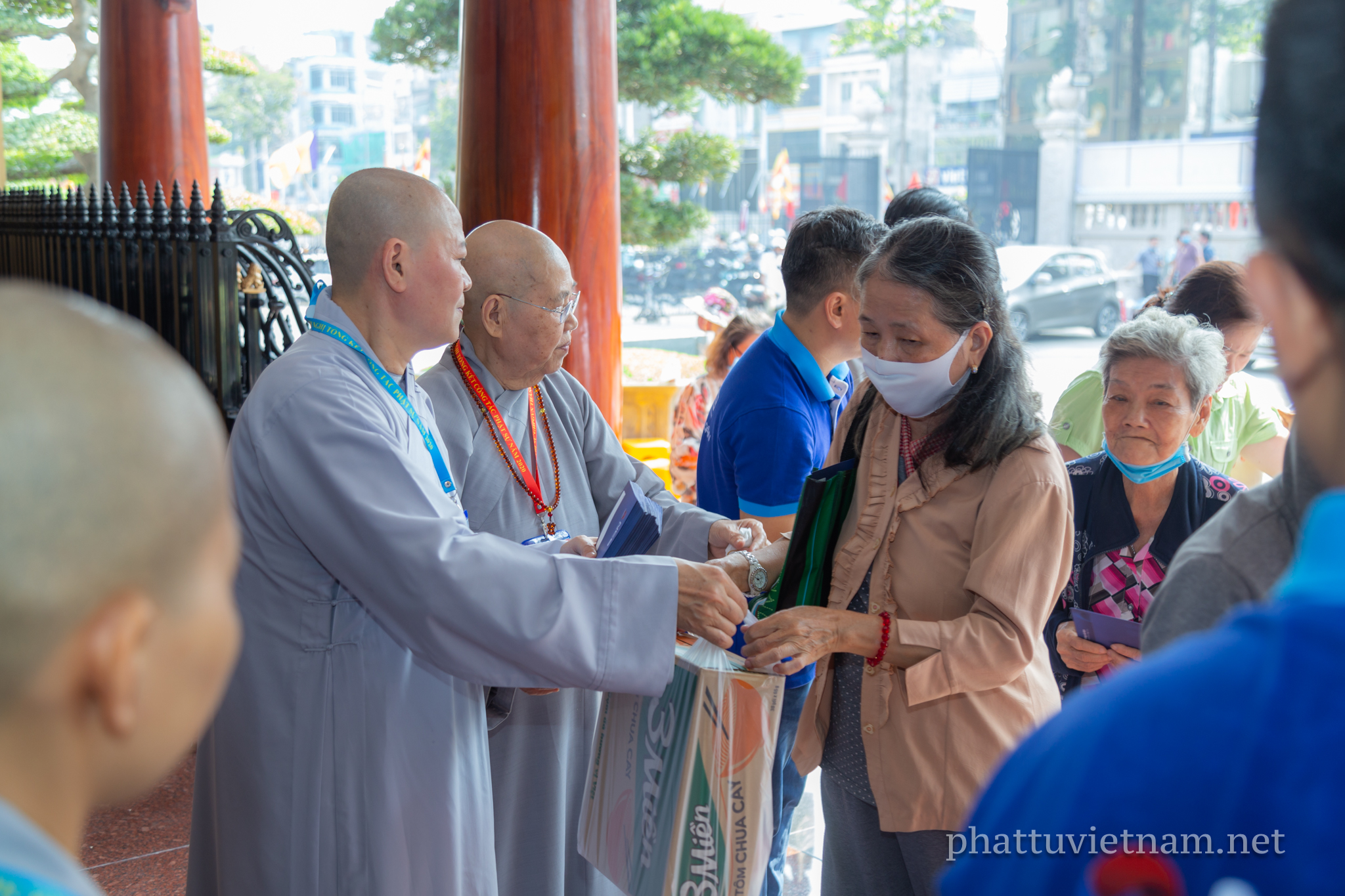 Năm nay, chư tôn đức Thường trực BTS GHPGVN TP.HCM kết hợp với Ban Từ thiện xã hội Phật giáo TP phát quà tại 3 cơ sở tự viện trực thuộc quản lý của Ban Trị sự: Việt Nam Quốc Tự (Q.10), chùa Phổ Quang (Q.Tân Bình), chùa Thanh Tâm (H.Bình Chánh).