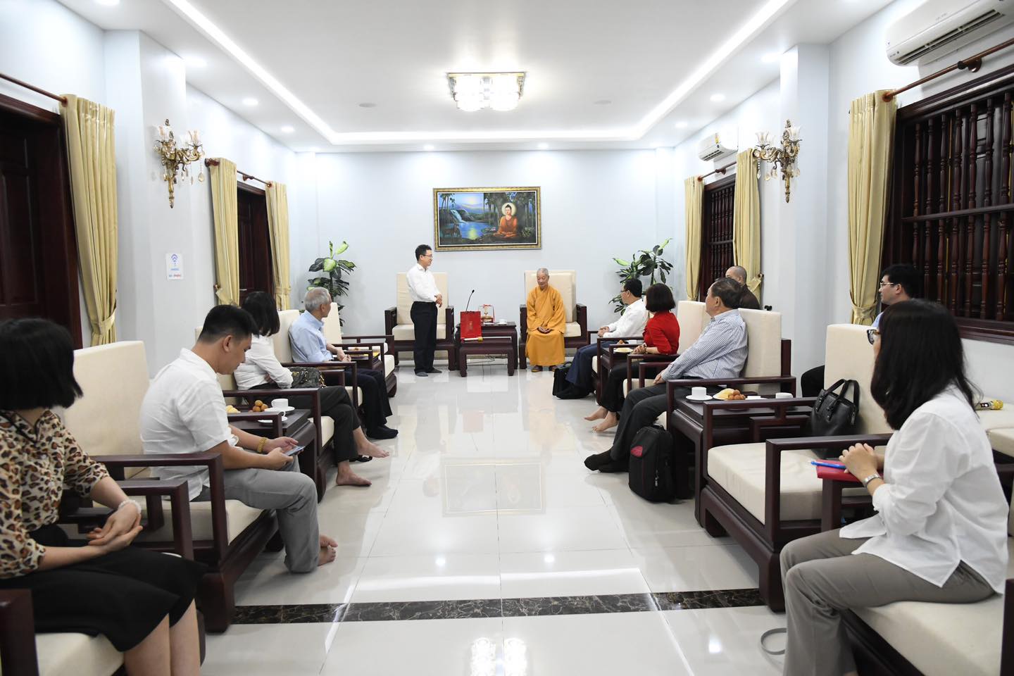 Trước đó, HT.Thích Trí Quảng – Đệ nhất phó Pháp chủ, Viện trưởng học viện cũng đã có thời gian tiếp phái đoàn.