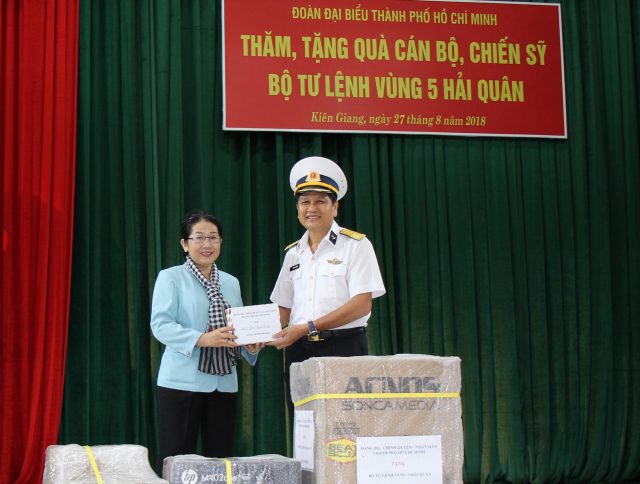 Phát biểu chia sẻ với cán bộ, chiến sĩ các đơn vị, bà Dung nhấn mạnh: “Đảng bộ, chính quyền và nhân dân TP.HCM luôn là hậu phương, chỗ dựa tinh thần vững chắc cho các cán bộ, chiến sĩ thực hiện nhiệm vụ bảo vệ chủ quyền biển đảo. Chúng tôi sẽ làm hết sức mình, có những hỗ trợ, đóng góp thiết thực về vật chất cũng như tinh thần để các chiến sĩ hoàn thành xuất sắc nhiệm vụ được giao”.