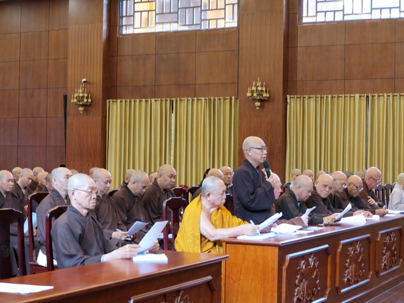 Dựa trên kết quả của của hai phiên thảo luận về nội dung: (1) Xuất gia, thọ giới và cầu thầy y chỉ, (2) Quản lý Tăng Ni Tự viện, Hòa thượng Thích Trí Quảng – Phó pháp chủ GHPGVN, Trưởng BTS GHPGVN TP. HCM, Trưởng BTC tuần lễ an cư tại Việt Nam Quốc Tự, cùng hơn 70 hành giả an cư là lãnh đạo Phật giáo TP.HCM, các Ban chuyên ngành trực thuộc và Ban thường trực Phật giáo 24 quận/ huyện tiến hành thảo luận các vấn đề đến liên quan đến ngành Tăng sự Phật giáo TP.