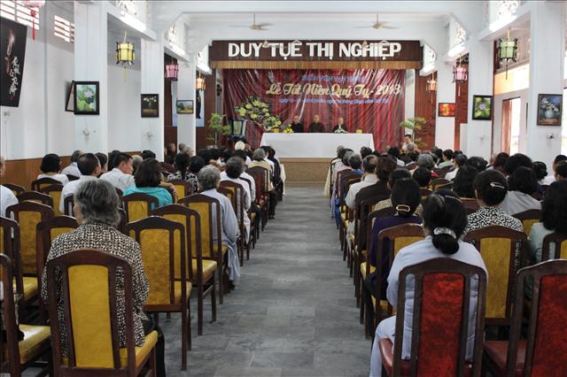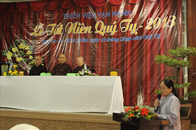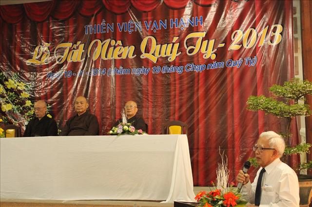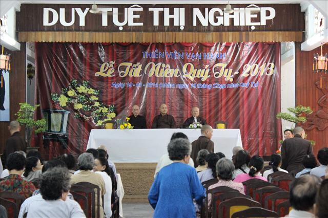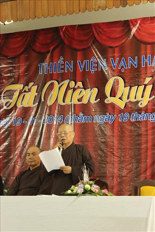 Đúc kết buổi lễ, HT Thích Trung Hậu đã thay lời chư Tăng ban Đạo từ đến Quý Phật tử tinh tấn tu học và làm Phật sự nhiều hơn nữa để góp phẩn xây dựng ngôi Tam Bảo Thiền Viện ngày càng trang nghiêm. Trước thềm năm mới Xuân Giáp Ngọ 2014, HT gởi lời chúc tết đến Quý Phật tử và Quý quyến đón một mùa Xuân An lạc kiết tường. Sau buổi lễ Quý Phật tử đã ở lại dùng bữa cơm cuối năm thân mật với Thiền viện trong niềm hoan hỷ.