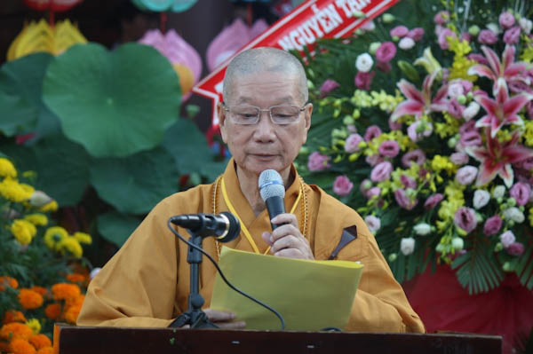Tiếp theo đó, HT.Thích Trí Quảng, Phó Chủ tịch HĐTS kiêm Trưởng BTS GHPGVN TP.HCM, Trưởng ban Tổ chức, tuyên đọc Diễn văn Đại lễ Phật đản PL 2557 của Đại lão HT.Thích Trí Tịnh – Chủ tịch HĐTS GHPGVN. Thông qua bài diễn văn, Ngài đã nhắc nhở đối với Tăng Ni và Phật tử: “Trong lúc một bộ phận đáng kể của xã hội ta đang bị ảnh hưởng trầm trọng của văn minh vật chất, suy thoái đạo đức, một bộ phận khác thì còn bị đe dọa bởi đói nghèo, bệnh tật, những nỗ lực của Giáo hội ta cần tập trung tham gia giải quyết hai khổ nạn này. Lấy Phật tâm để làm Phật sự, lấy thiện tâm để làm thiện sự; nói như thế là tạm phân biệt tâm đạo, tâm đời, việc đạo, việc dời, chứ thật ra thiện tâm là Phật tâm, thiện sự là Phật sự; hai tâm này là một, hai sự này cũng không phải hai; thực hiện như thế là chúng ta góp phần làm sáng ngời giáo lý của đấng Thích Tôn, góp phần xoa dịu những khổ đau của xã hội, nhân quần.”