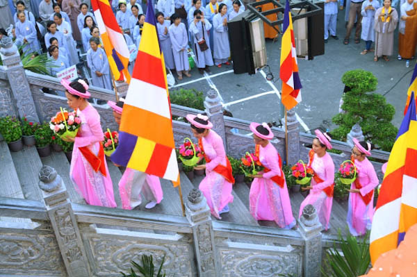 Trong không khí trang nghiêm, buổi lễ đã cử hành nghi thức Phật đản theo hai truyền thống Bắc tông và Nam tông. Sau đó, Chư Tôn Đức giáo phẩm, quý quan khách đã thả chim bồ câu, bóng bóng kính mừng đại lễ Phật đản và cầu nguyện cho quốc thái dân an, chúng sanh an lạc. Buổi lễ kết thúc với lời cảm tạ của HT.Thích Thiện Tánh, Phó ban Thường trực BTS GHPGVN TP.HCM, Phó ban Tổ chức đại lễ.