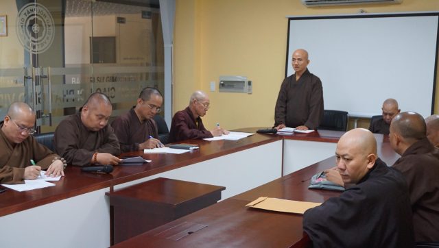 Chư tôn đức Thường trực BTS GHPGVN và Các Ban ngành trực thuộc tại phiên họp chiều nay (Ảnh: Huỳnh Diệu)