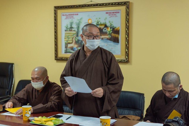 Thượng tọa Thích Tâm Hải, Ủy viên Thường trực Ban Trị sự kiêm Trưởng ban Thông tin – Truyền thông GHPGVN TP.HCM chủ trì buổi họp.