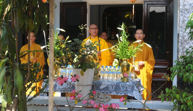 Buổi lễ dưới sự chứng minh của Hòa Thượng Thích Thông Quả viện chủ Tu Viện Phước Hoa – Tu Viện Phước Lạc (Long Thành – Đồng Nai) Thượng Tọa Thích Chân Tính trụ trì Chùa Hoằng Pháp (Hóc Môn – TP.Hồ Chí Minh) Thượng Tọa Thích Phước Cần trụ trì chùa Viên Quang (Huế) Ni Sư Thích Nữ Diệu Nguyên trụ trì chùa Huơng Sơn (Đà Nẵng) và đông đảo thiện nam tín nữ phật tử tham dự.
