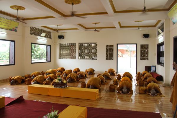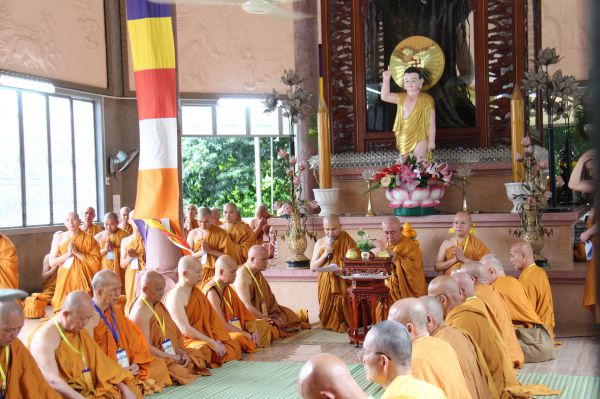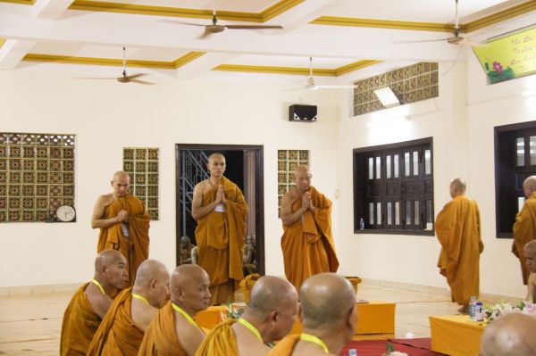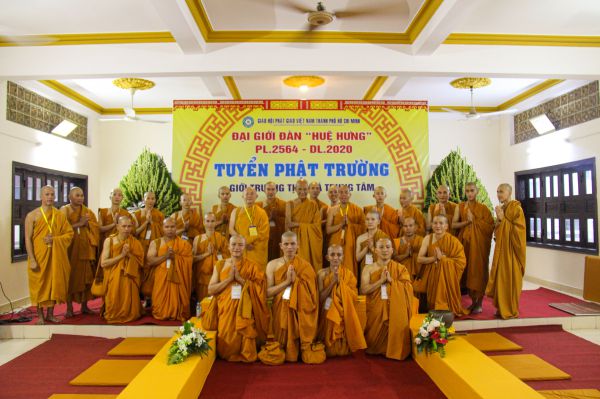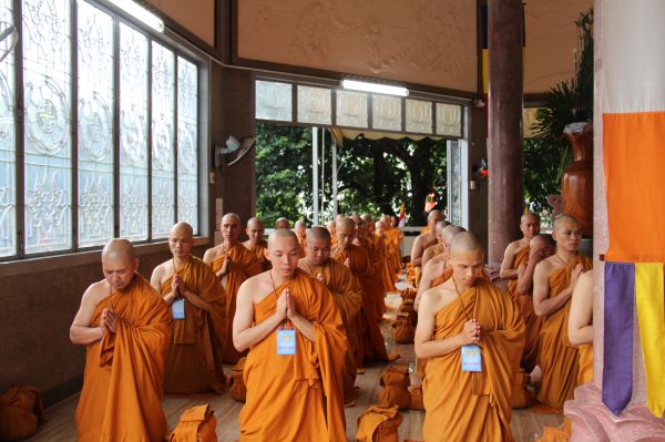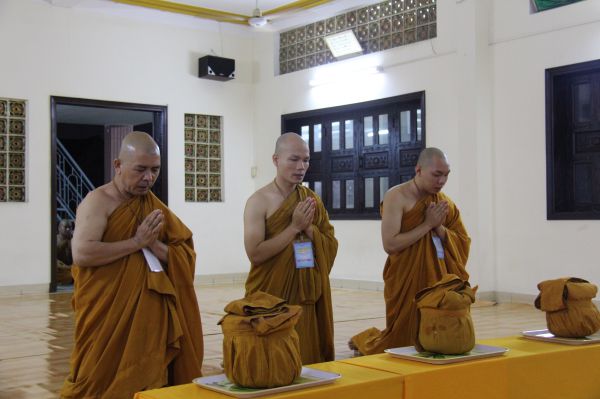 Sau khi đã kiểm tra y, bát đầy đủ, các giới tử vào đảnh lễ Hội đồng giới sư. Hòa thượng Giáo thọ đã hướng dẫn các giới tử thỉnh Tam bảo và chư Tôn đức giới sư tác thành tánh thể Tỳ-kheo cho mình.