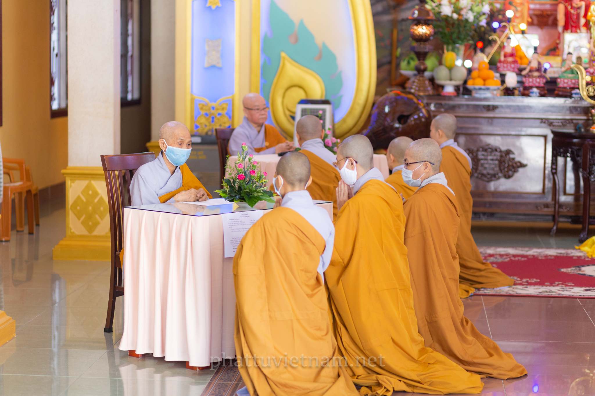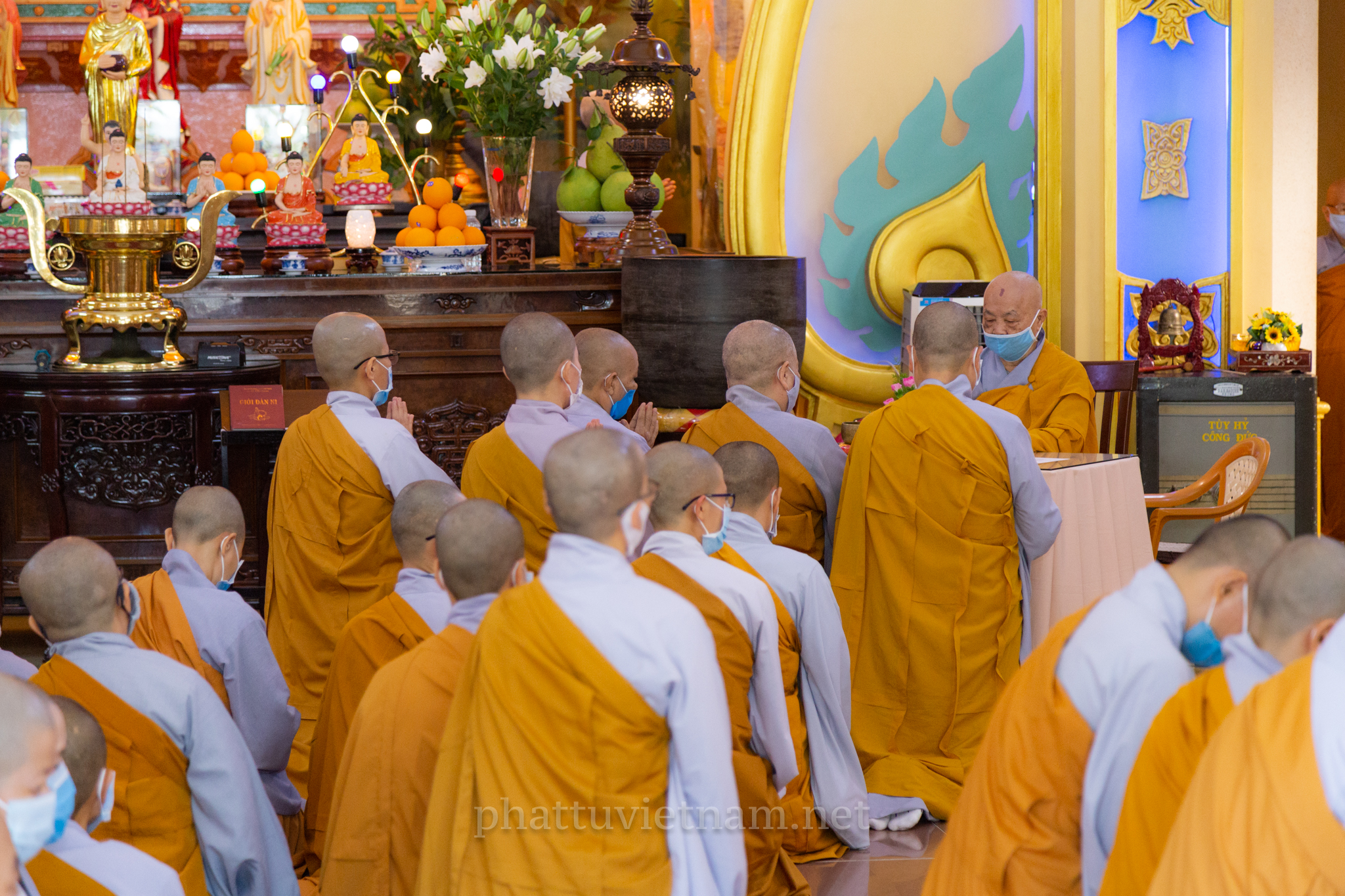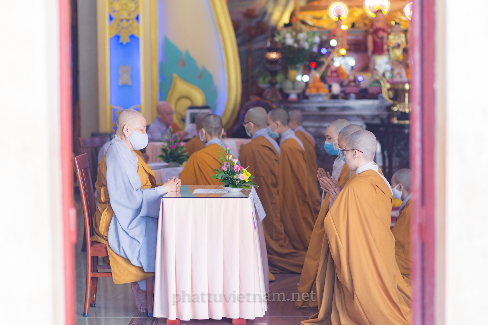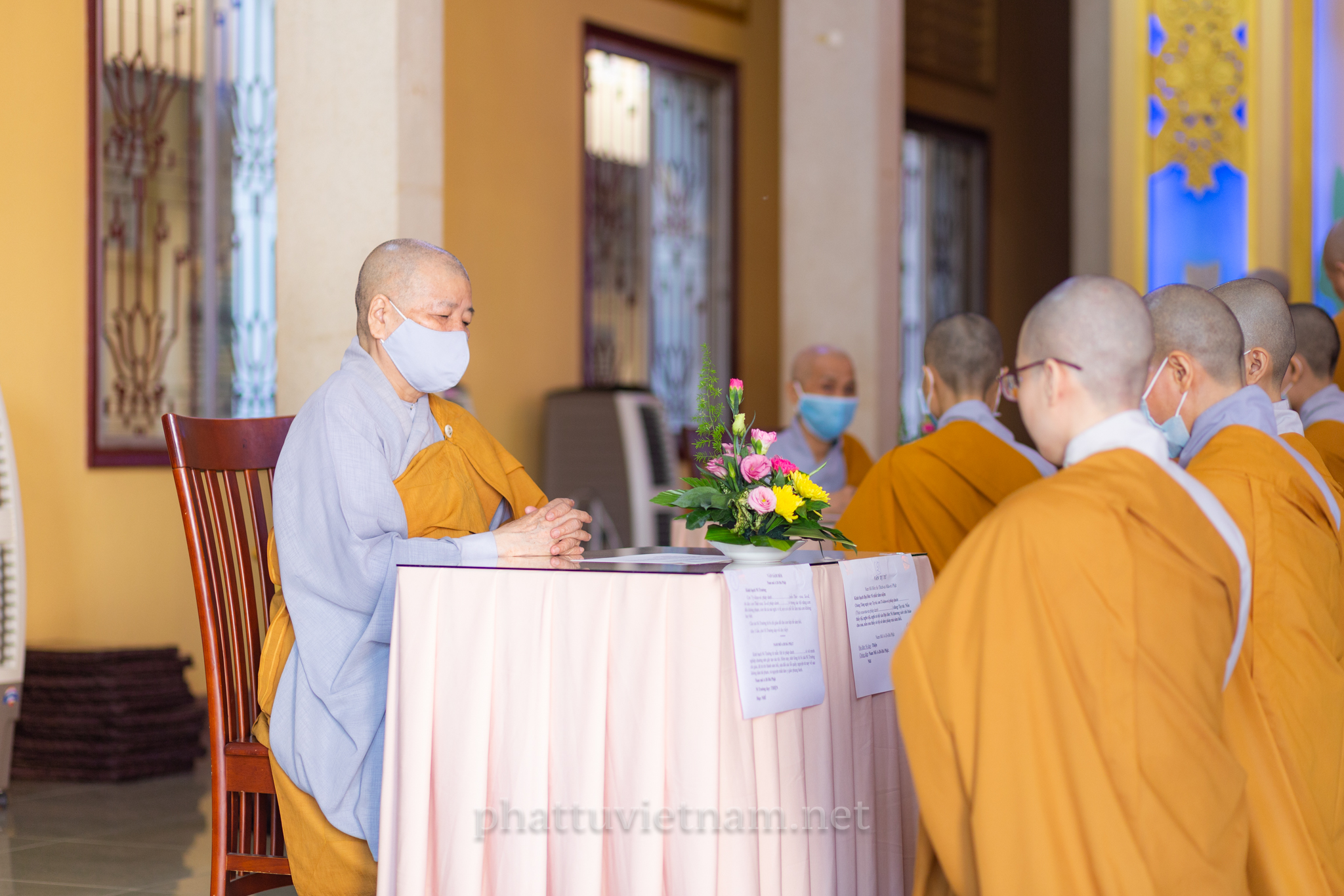 Nhị vị NT.Thích nữ Tịnh Nghiêm – Phó Trưởng Phân ban Ni giới TW, NT.Thích nữ Như Xuân – Phó Trưởng ban Thường trực Phân ban Ni giới Phật giáo TP, Thiền chủ trường hạ đã tác pháp Tự tứ. Sau đó, đại chúng thứ lớp phương tiện tác pháp Tự tứ.