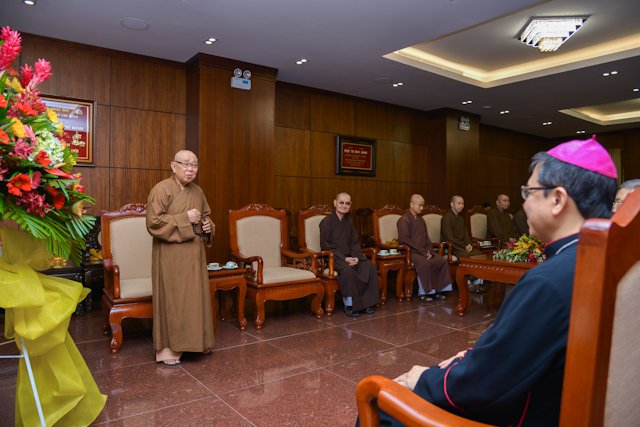 Phát biểu tại buổi viếng thăm, Giám mục Giuse Đỗ Mạnh Hùng đã bày tỏa niềm vui khi thấy Trụ sở Ban trị sự PG TP.HCM đã được xây dựng khang trang và rộng lớn. Nhân dịp Phật Đản PL:2562, Ngài Tổng quản Tổng Giáo Phận TP.HCM gởi lời chúc sức khỏe, bình an đến Chư tôn đức lãnh đạo Phật giáo TP.HCM.