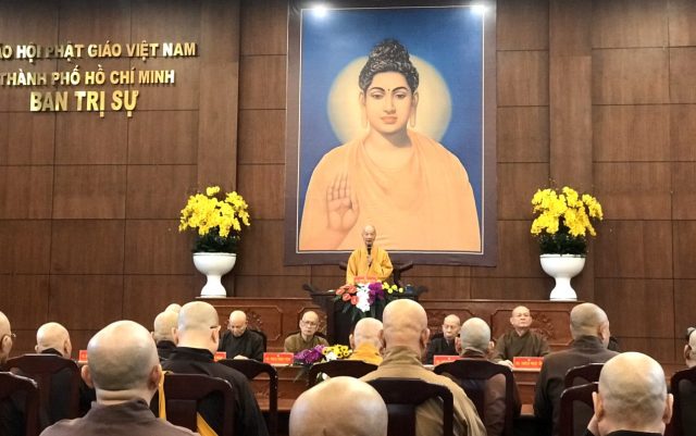 Phiên họp do HT.Thích Trí Quảng – Phó Pháp chủ kiêm Giám Luật HĐCM, Trưởng Ban Trị sự GHPGVN TP.HCM chủ trì.