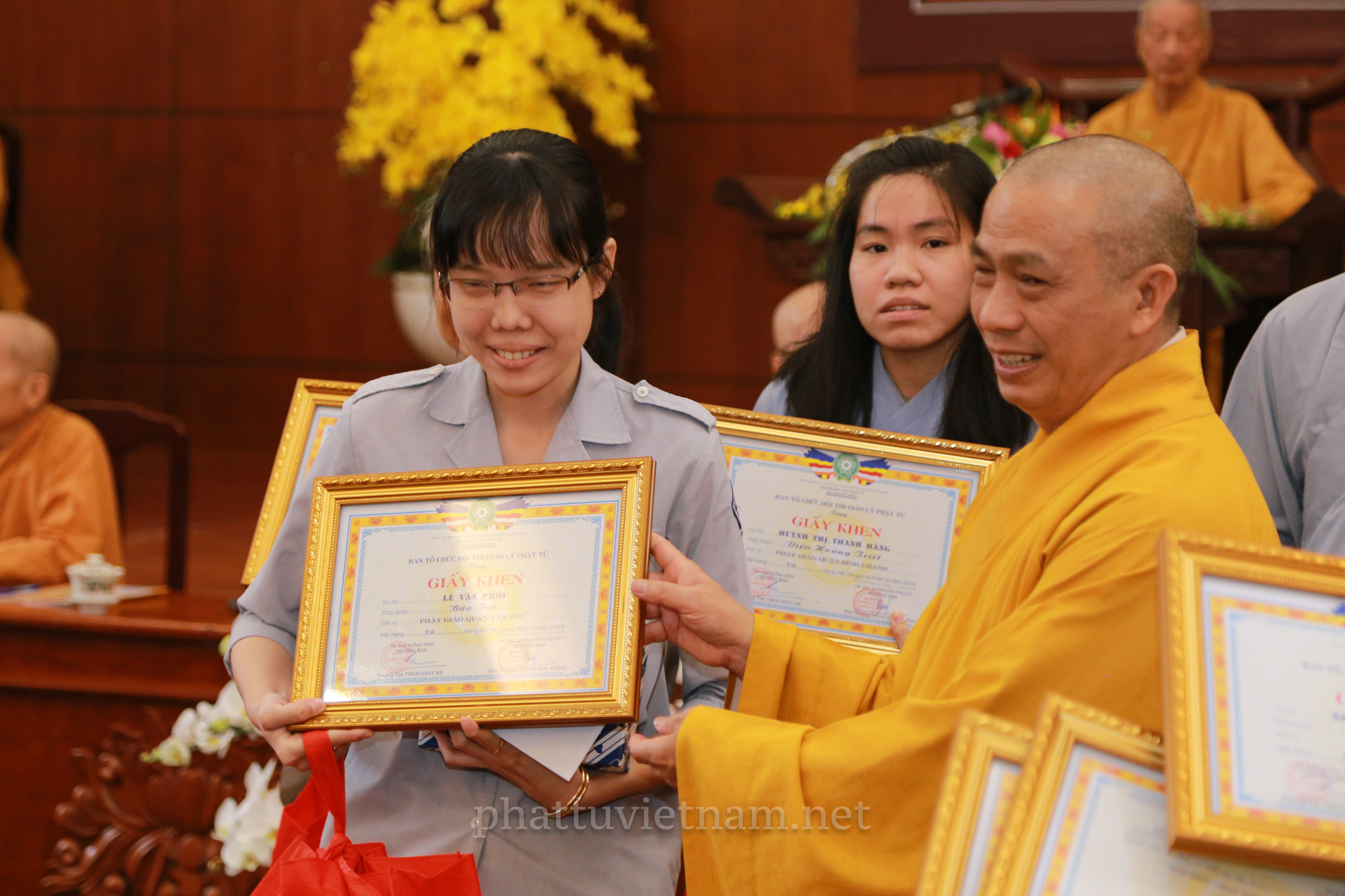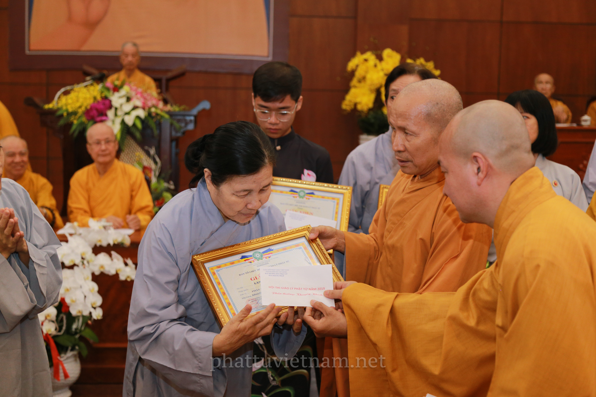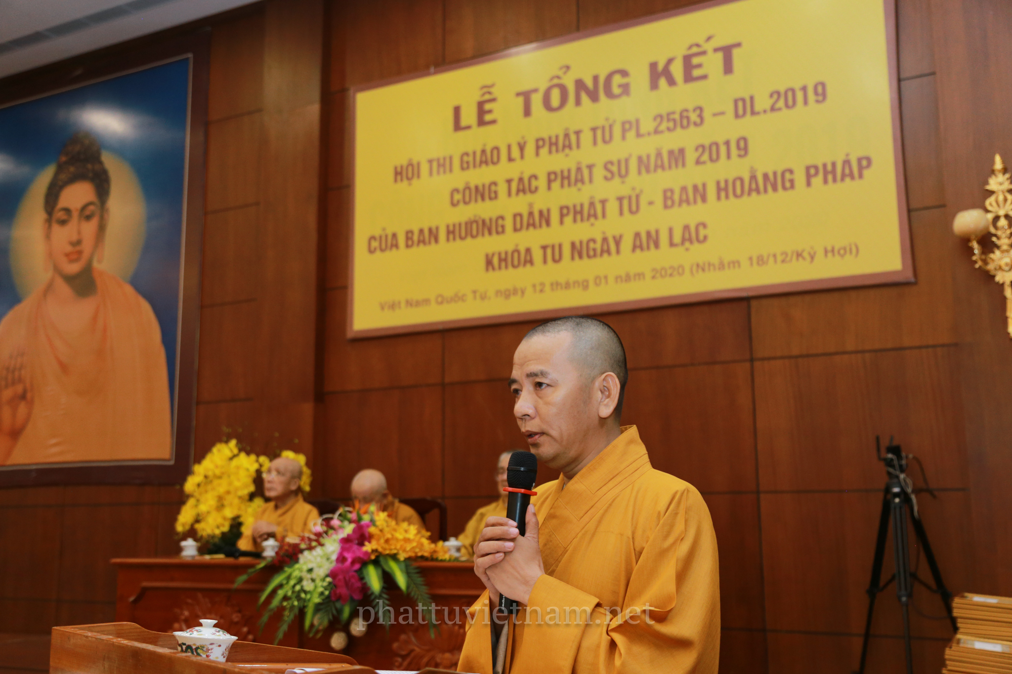 Kết thúc buổi lễ, Trưởng lão HT.Thích Trí Quảng đã tán thán những thành tựu mà Ban Hướng dẫn Phật tử và Ban Hoằng pháp đã đạt được, đồng thời sách tấn chư Tôn đức tiếp tục duy trì các lớp giáo lý, nâng cao kiến thức Phật học cho Phật tử đã tham gia kỳ thi giáo lý vừa qua để có thể trở thành những hoằng pháp viên tương lai.