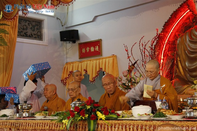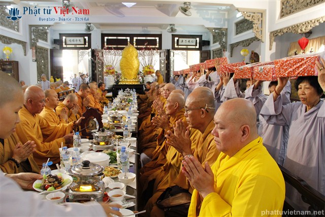 Sáng ngày 13 âl, chư Tôn Đức Tăng, cùng Quý Ni Trưởng Từ Nhẫn (chùa Phước Viên), NT Từ Hạnh (chùa Từ Thuyền), NT Như Hải (chùa Dược Sư) và chư ni hoàn kinh Dược Sư, do ĐĐ Thích Đức Thông – Trụ trì chùa Võ Linh (H. Nhà Bè) chủ lễ. Tiếp theo là buổi lễ cúng dường Trai Tăng Chư Tôn Đức Tăng Ni như pháp.
