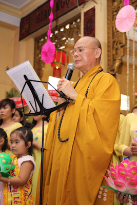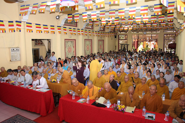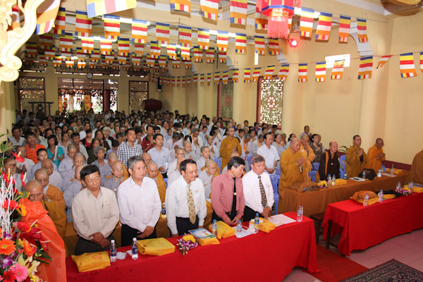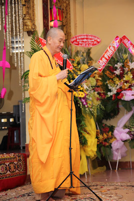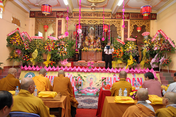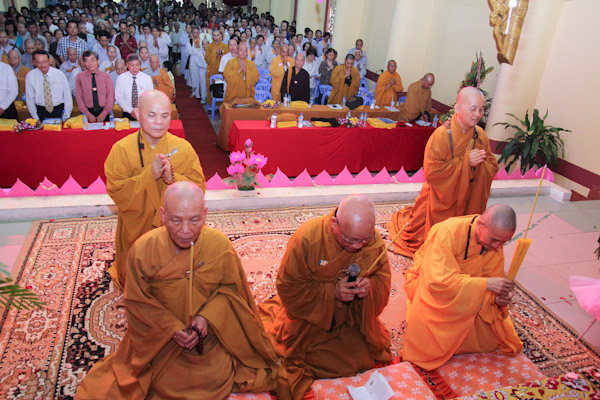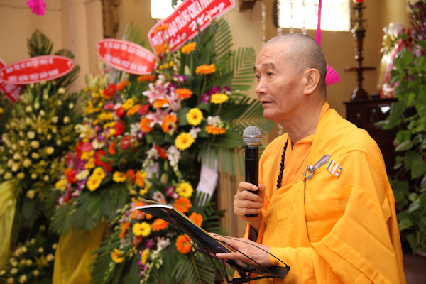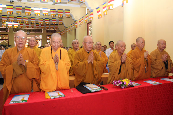 Quang lâm chứng minh có; HT. Thích Như Niệm – ủy viên thường trực HĐTS, Phó trưởng Ban thường trực Ban Từ thiện TW, Phó BTS GHPGVN TP.HCM, HT. Thích Huệ Minh – Uỷ viên TT HĐTS, Phó trưởng Ban nghi lễ TW, HT. Thích Thanh Sơn – ủy viên HĐTS, Trưởng Ban trị sự GHPGVN Q.1, HT. Thích Thanh Hùng – ủy viên HĐTS, phó trưởng Ban Hoàng pháp TW, HT. Thích Minh Thiện – Uỷ viên HĐTS, Trưởng BTS Phật giáo tỉnh Long An, HT. Thích Tấn Đạt – Ủy viên Thường trực HĐTS, Phó ban Thường trực Ban Hoằng pháp TW, Trụ trì chùa Hòa Khánh kiêm trưởng Ban tổ chức đại lễ Phật đản PL: 2557 – DL 2013, TT. Thích Phước Đạt, ủy viên HĐTS, Phó trưởng Ban Văn hóa TW, TT. Thích Tâm Chơn – ủy viên HĐTS, Phó trưởng Ban thường trực BTS GHPGVN Q. Bình Thành cùng chư tôn thiền đức Tăng Ni, chư Ni trưởng, quý Ni các ban ngành TW và TP.HCM, trụ trì các tự viện trong và ngoài quận.