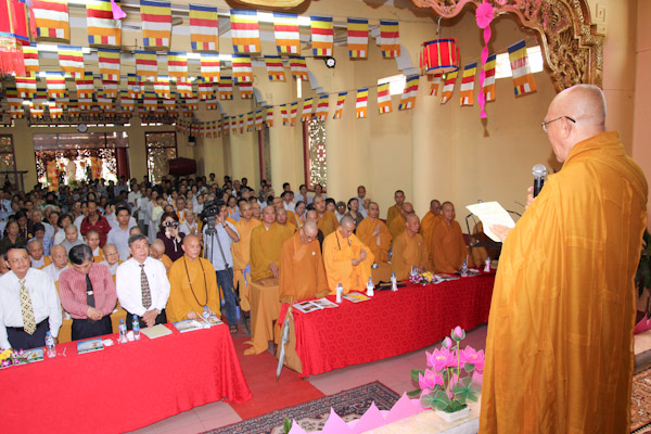 Tại đại lễ HT. Thích Tấn Đạt – Ủy viên Thường trực HĐTS, Phó ban Thường trực Ban Hoằng pháp TW, Trụ trì chùa Hòa Khánh kiêm trưởng Ban tổ chức đại lễ Phật đản PL: 2557 – DL 2013 phát biểu khai mạc mở đầu cho buổi lễ. HT. Thích Như Niệm – ủy viên thường trực HĐTS, Phó trưởng Ban thường trực Ban Từ thiện TW, Phó BTS GHPGVN TP.HCM tuyên đọc thông điệp của Đức Pháp chủ GHPGVN, HT. Thích Thanh Hùng – ủy viên HĐTS, phó trưởng Ban Hoàng pháp TW tuyên đọc Diễn văn của HT Chủ tịch Hội đồng trị sự GHPGVN.