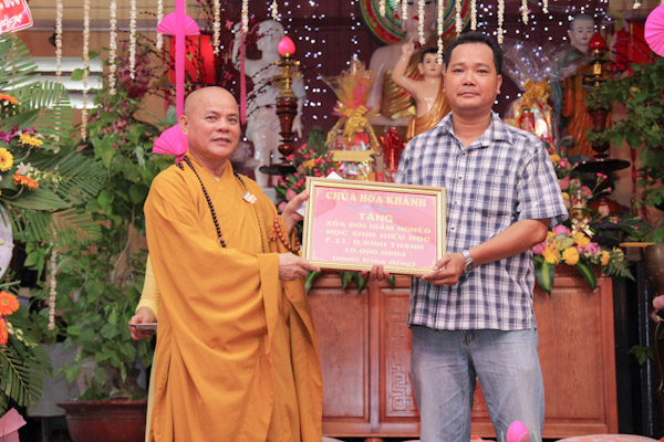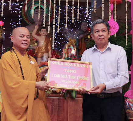 Đặc biệt trong buổi lễ Phật tử chùa Hòa Khánh, kẻ ít người nhiều cũng đã phát tâm hỗ trợ, trao tặng cho người nghèo qua MTTQ Q. Bình Thạnh một căn nhà tình thương trị giá 30 triệu đồng, tặng cho quỹ xóa đói giảm nghèo và học sinh hiếu học tại địa phương phường 11 là 10 triệu đồng và cũng tặng những phần qua mừng Phật đản đến người có hoàn cảnh khó khăn tại buổi lễ.