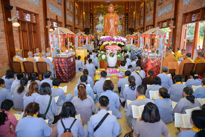 Tại buổi, Chư tôn đức đã quang lâm pháp hội, nơi tôn trí 7 tôn tượng Phật Dược Sư để niêm hương, đãnh lễ và xứng tán danh hiệu Ngài. Sau đó, Chư Tôn Hòa thượng chứng minh làm lễ sái tịnh và hướng dẫn Phật tử tại pháp hội tụng kinh Dược Sư.