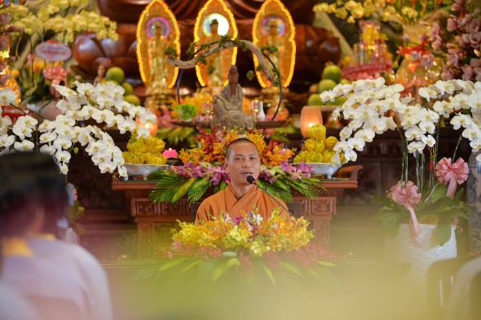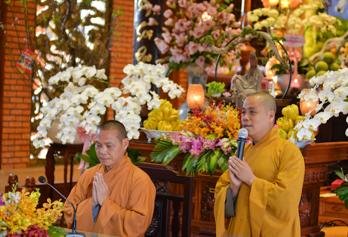 Đại đức trụ trì phát biểu tri ân Thượng tọa giảng sư