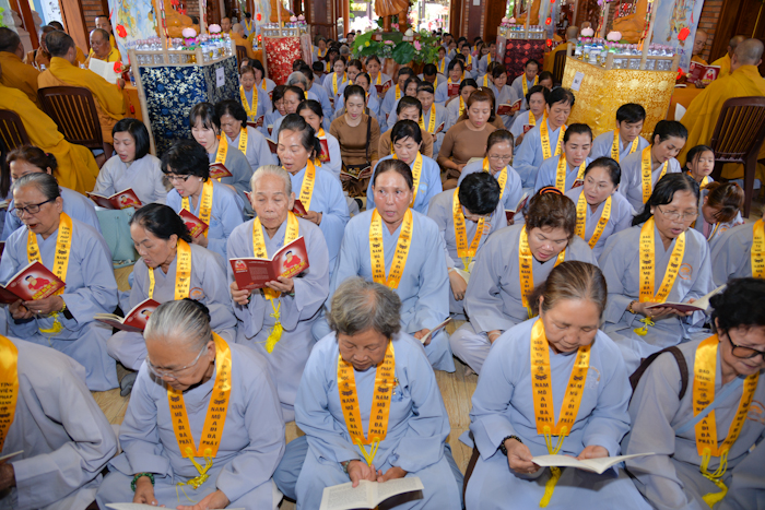 Phật tử trang nghiêm tụng kinh Dược Sư