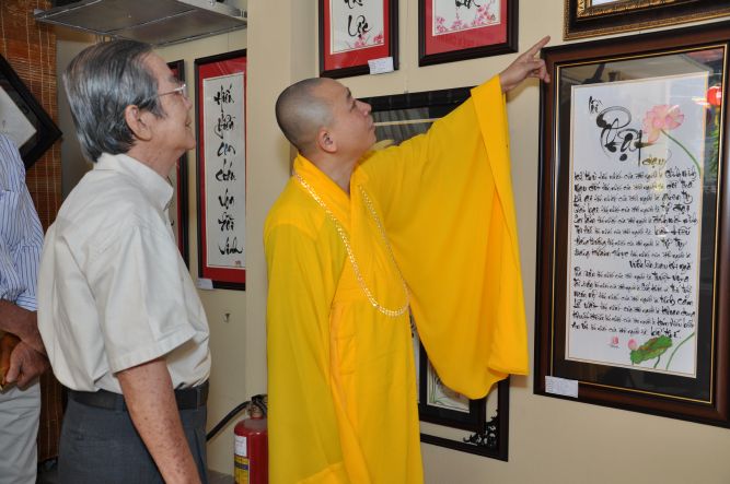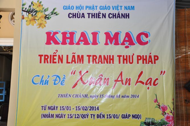 Nhằm chào đón xuân Di Lặc- mùa xuân của sự hoan hỷ, đong đầy tình yêu thương,vào sáng ngày 15/01/2014 (nhằm 15/12 năm Qúy  Tỵ), Đại Đức Thích Quảng Tiến đã khai mạc triển lãm thư pháp chủ  đề  “Xuân An Lạc” với sự tham gia của các nhà thư pháp Tuệ Chiếu, Năm Tú và Võ Dương . Buổi triển lãm được tổ chức từ ngày 15/01/2014 đến 15/02/2014 (nhằm ngày 15/12 năm Giáp Ngọ đến 15/12 năm Quý Tỵ) đế Quý Phật tử cùng quan khách thưởng lãm, toàn bộ lợi nhuận thu được từ việc bán tranh sẽ được cúng dường để thực hiện cuốn kinh Vu Lan bằng thư pháp khổ lớn (1,38m x 2,26m, nặng 500kg), với tổng giá trị khoảng 150.000.000 đồng và dự kiến sau khi hoàn thành sẽ được đem đi triển lãm trong Đại lễ Vesak 2014 sắp tới.