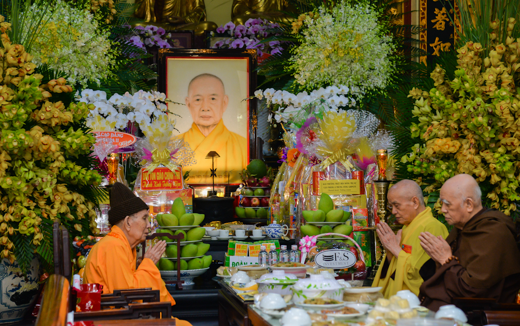 Nơi Giác linh đường, Chư tôn trưởng lão Hòa thượng HĐCM, Chư tôn giáo phẩm HĐTS đã thành kính dâng hương và cầu nguyện đến Giác Linh cố Hòa thượng viện chủ TĐ Vĩnh Nghiêm được cao đăng thượng phẩm, quả chứng vô sanh.