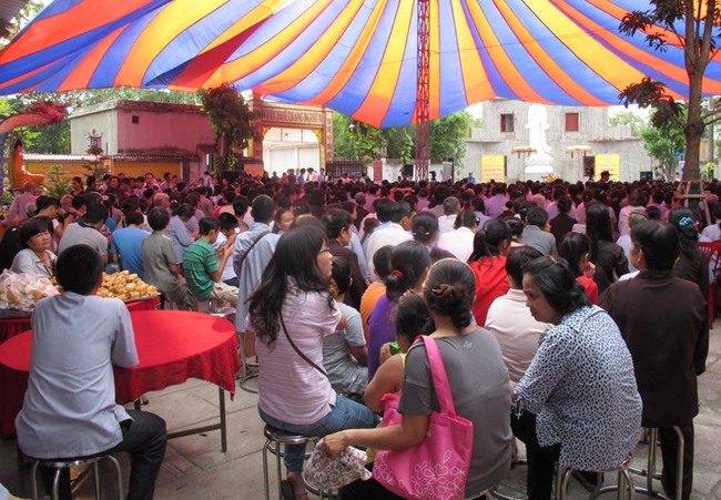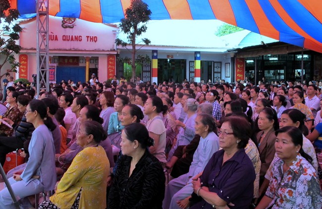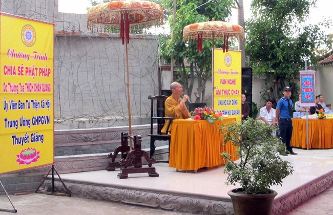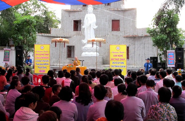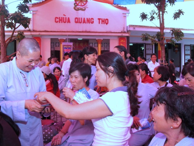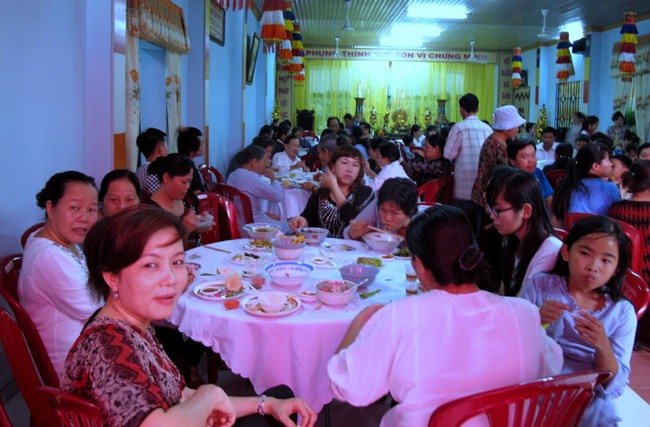 Dưới đây là một số hình ảnh về quang cảnh buổi chia sẻ Phật pháp của TT Thích Chân Quang và tiệc Buffet chay ủng hộ xây dựng Núi Quan Âm tại chùa Quang Thọ – Hóc Môn: