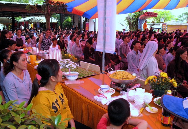 Đúng 16h30″, TT Thích Chơn Trí tuyên bố khai mạc chương trình ẨM THỰC CHAY. Các Phật tử hoan hỷ vào hoà nhập vào không khí của tiệc Buffet. Nhiều món ăn tại đây đã mang lại cho thực khách những trải nghiệm ẩm thực thú vị. Không chỉ thưởng thức ẩm thực, khách tham dự còn được thư giãn qua chương trình ca nhạc với những giai điệu ngọt ngào do các Ca sĩ nổi tiếng phục vụ. Mặc cho trời mưa, các tiết mục văn nghệ vẫn diễn ra đúng như dự định và thực khách vẫn tiếp tục ở lại với buổi Lễ./.