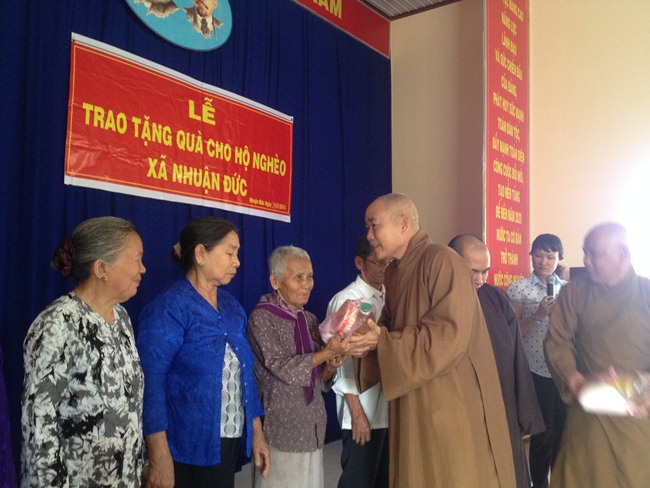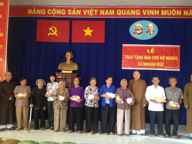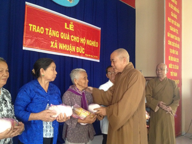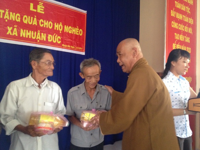 Được biết, mỗi phần trị giá 300 ngàn đồng (bao gồm các nhu yếu phẩm cần thiết, tổng trị giá gần 80 triệu đồng). Với tâm nguyện của người đệ tử Phật. TT. Thích Viên Giác mong cho bà con nghèo tại xã Nhuận Đức, trong ngày 21/1/2014 có điều kiện vui hưởng không khí Xuân mới ấm áp hơn.