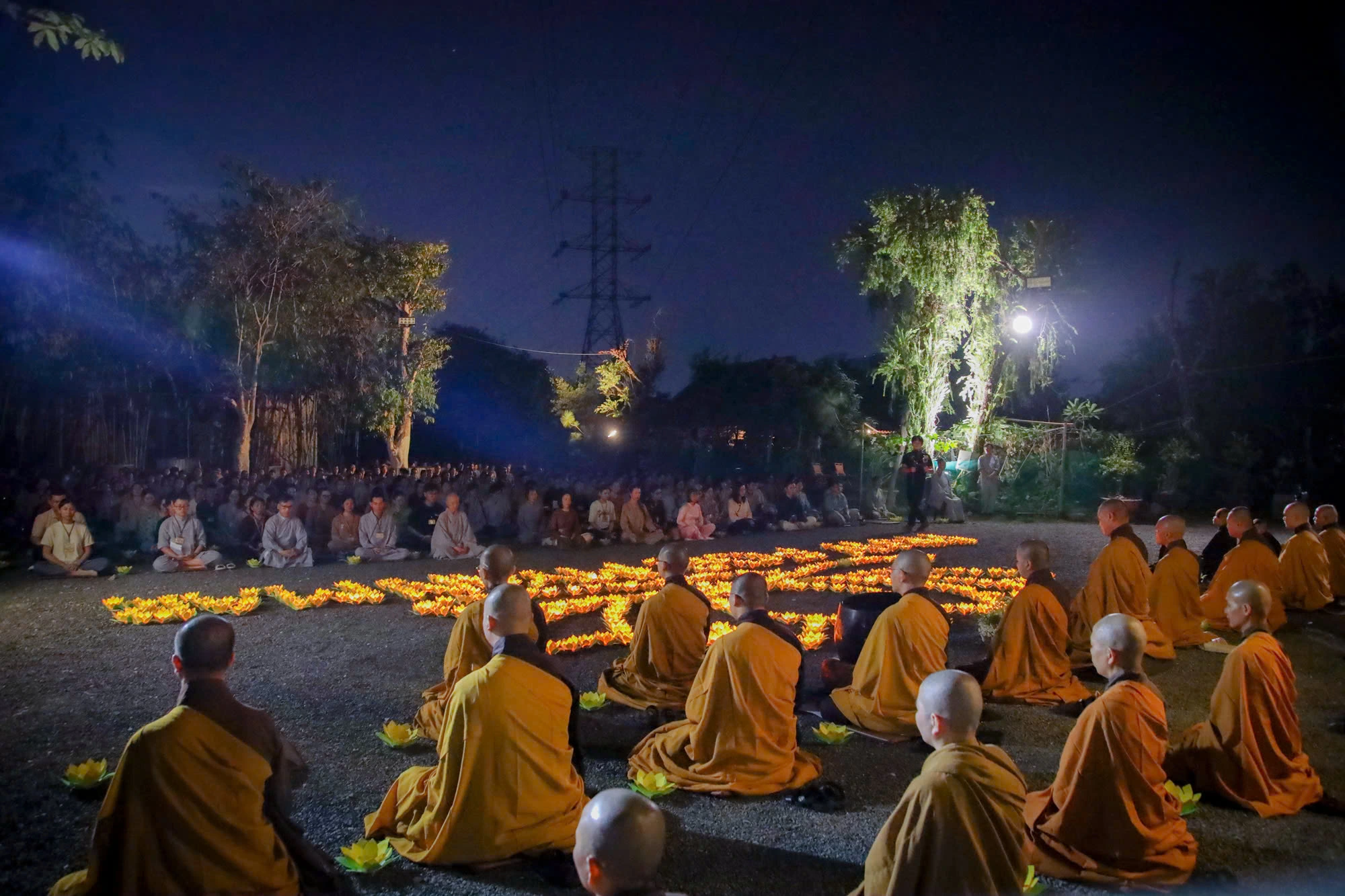 Buổi lễ có sự tham gia của gần 500 Phật tử, người mến mộ đạo Phật. Tại không gian vườn Trăng Non, mở đầu buổi lễ, người tham dự cùng hướng mắt về màn hình chiếu lại thảm họa động đất mạnh 7,7 độ richter tại Myanmar.