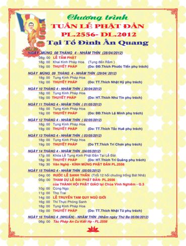 Dưới đây là chương trình tuần lễ Phật Đản PL.2556 – DL.2012 tại Tổ đình Ấn Quang – Q.10: