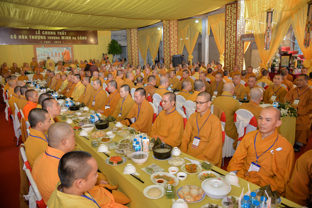 Tiếp theo, chư Tôn đức Giáo phẩm cùng Môn đồ pháp quyến đã nhất tâm niệm Phật, cầu nguyện cho Giác linh Hòa Thượng cao đăng thượng phẩm. Buổi lễ kết thúc sau phần nghi thức cúng Quá đường và thọ thực.