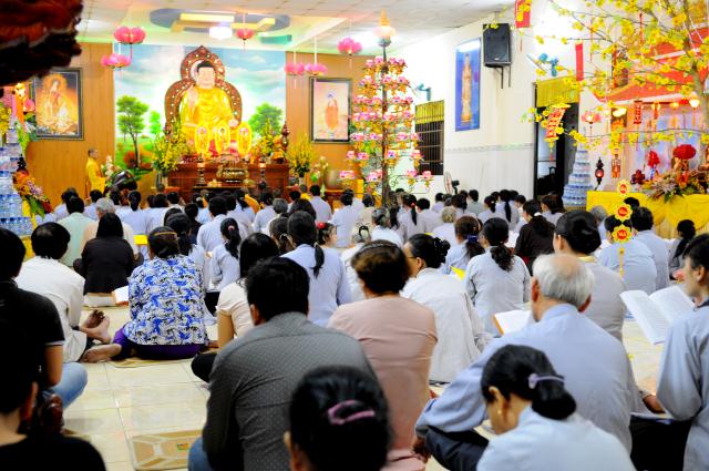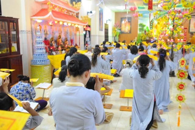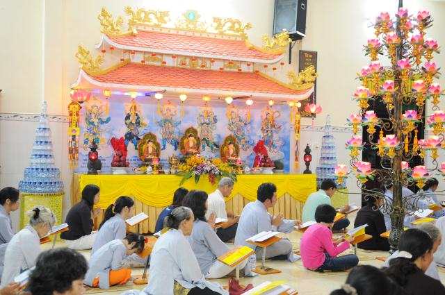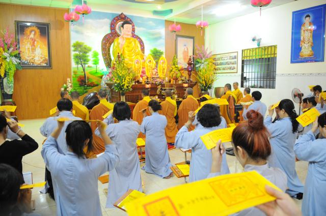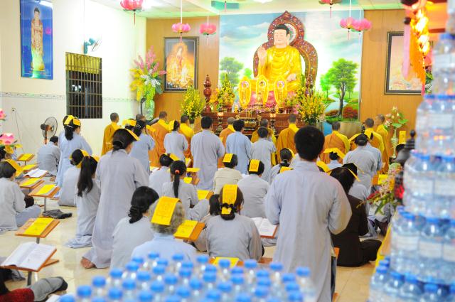 Tham dự lễ khai đàn còn có sự hiện diện chứng minh chú nguyện của chư tăng chùa Hoằng Pháp và đông đảo Phật tử về tham dự.