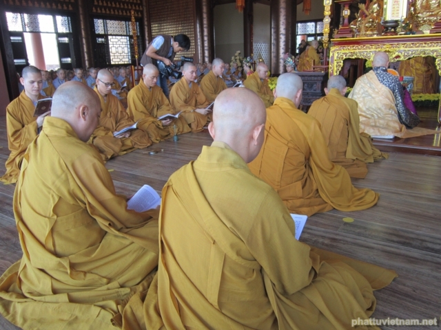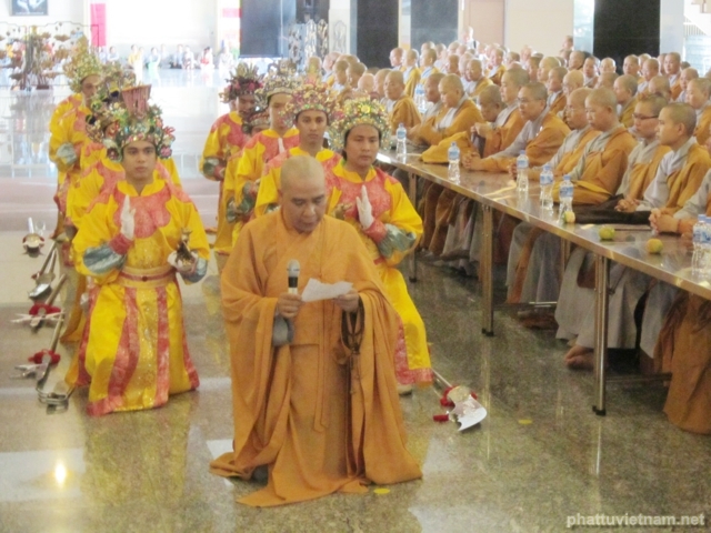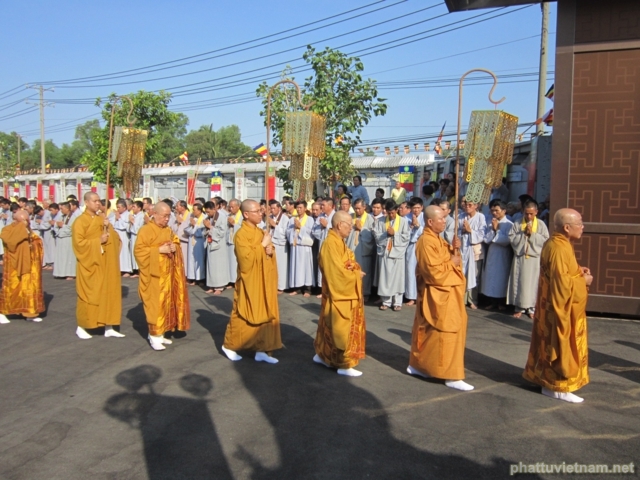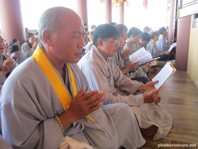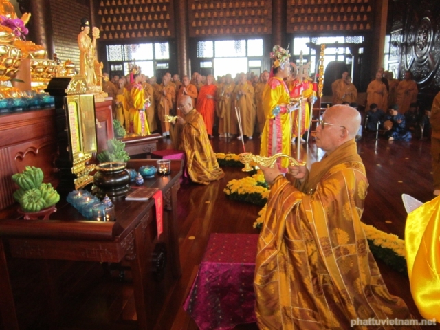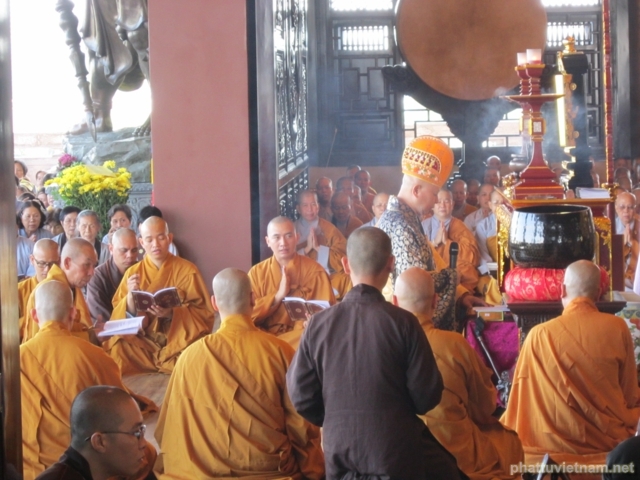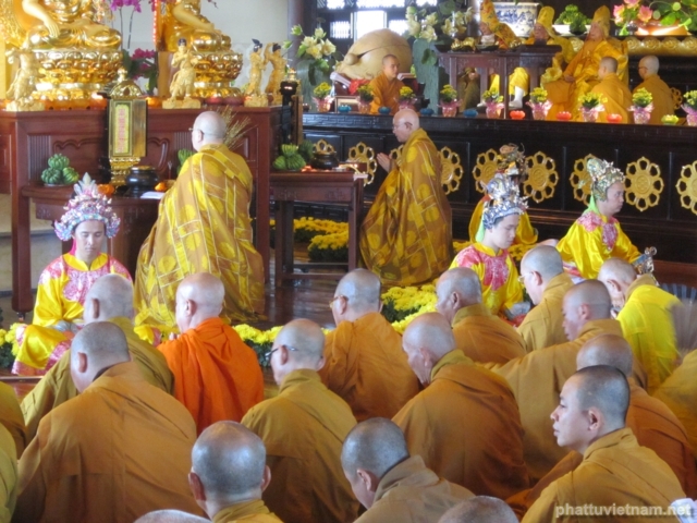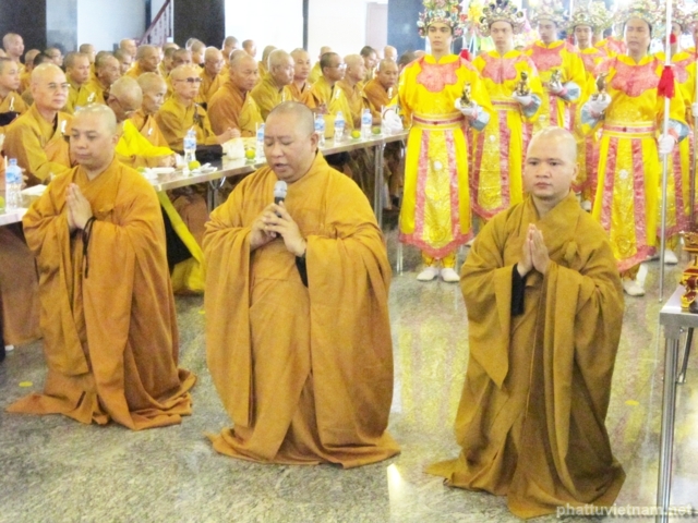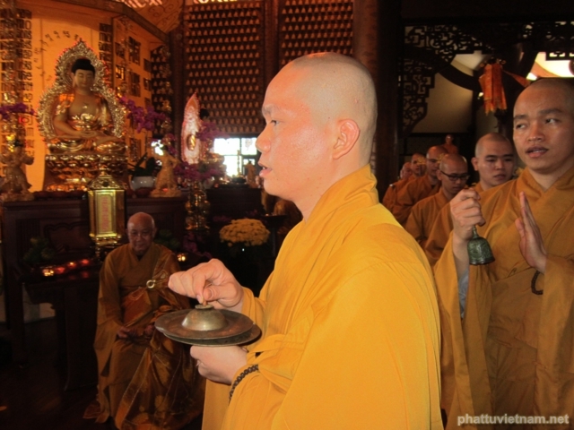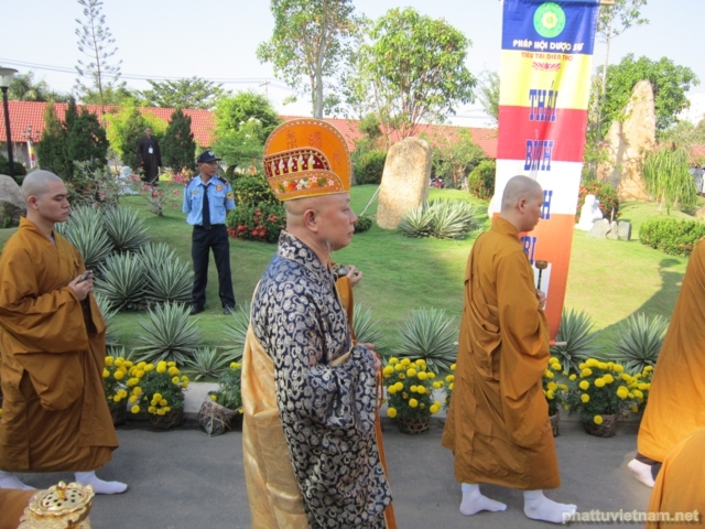 Buổi lễ bắt đầu từ lúc 8h sáng. Sau thời bạch Phật, lễ thỉnh chư Tôn Tăng Ni chứng minh và nghinh tường, tập phước, TT. Thích Lệ Trang – Trưởng Ban Nghi lễ GHPGVN TP.HCM làm “Duy na” đàn tràng, cùng sự chủ trì của ba vị chứng minh và bảy vị sám chủ các lễ đàn, đã hướng dẫn đàn tràng cúng ngọ, tạ Phật, trì tụng Kinh Dược Sư Lưu Ly Quang Như Lai Bổn Nguyện Công Đức, tuyên sớ kỳ an Đại Pháp hội, kinh hành niệm Phật và hồi hướng công đức.